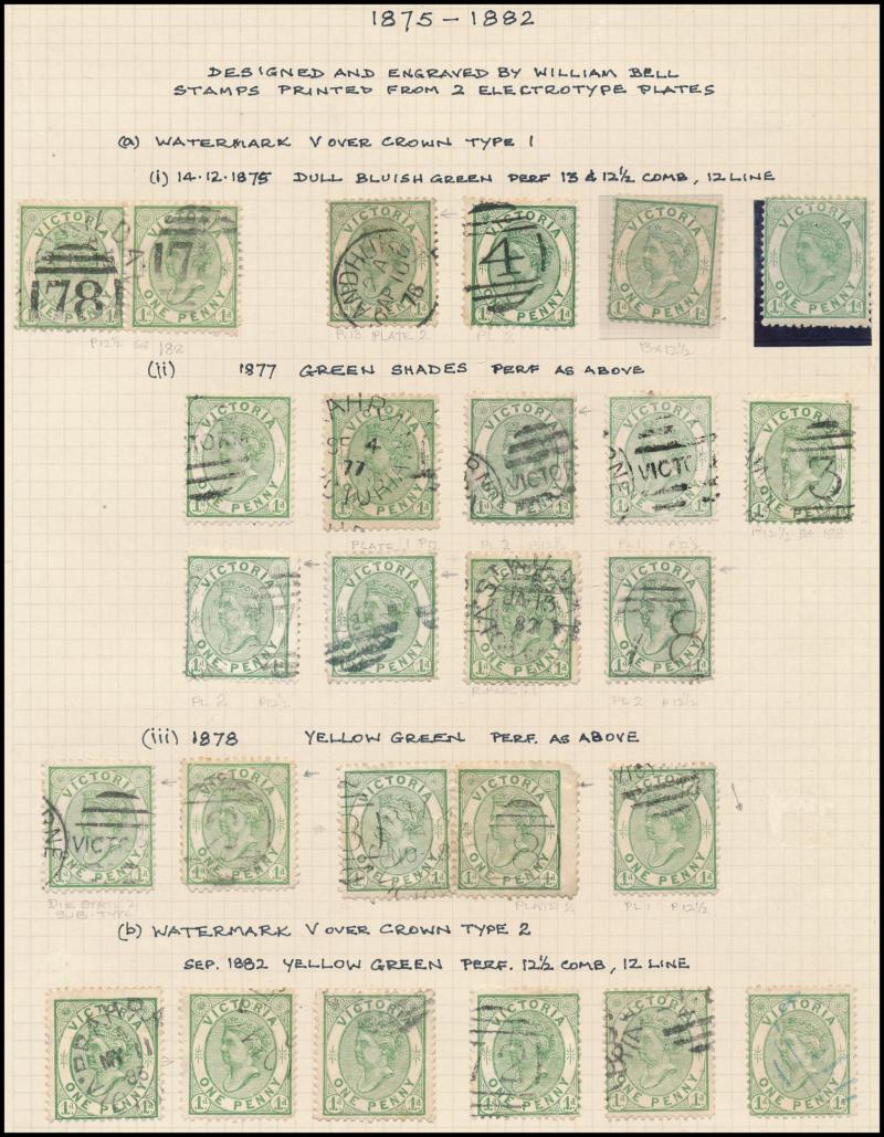 duplex, unlisted by Gibbons. Geoff Kellow states at page 195 that "Perforation was mostly by comb 13 and 12½ machines, but there was use of the single-line 12 gauge throughout. No example of a compound perforation has been recorded on the 1d". RPSV