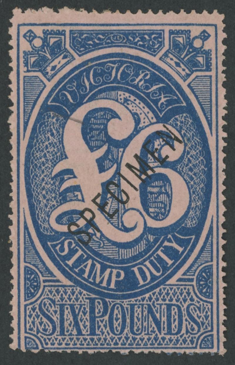 1884-96 Oversize Stamp Duty Validated for Postage £6 blue/pink SG 249 with diagonal sans serif Type 20 'SPECIMEN' Overprint, some