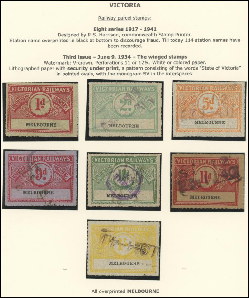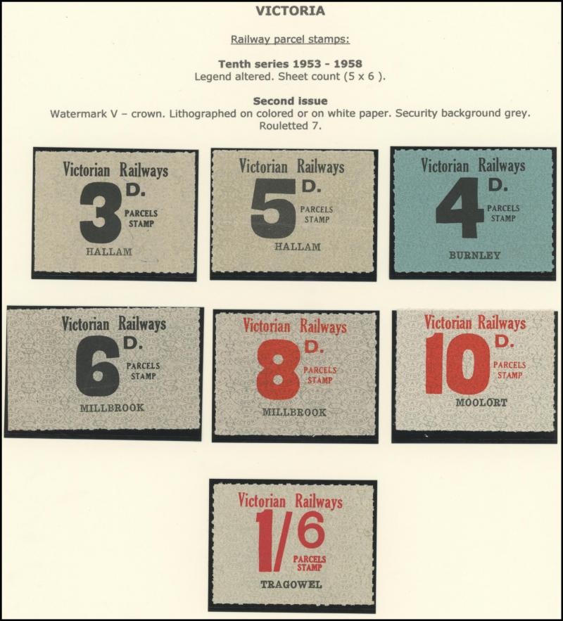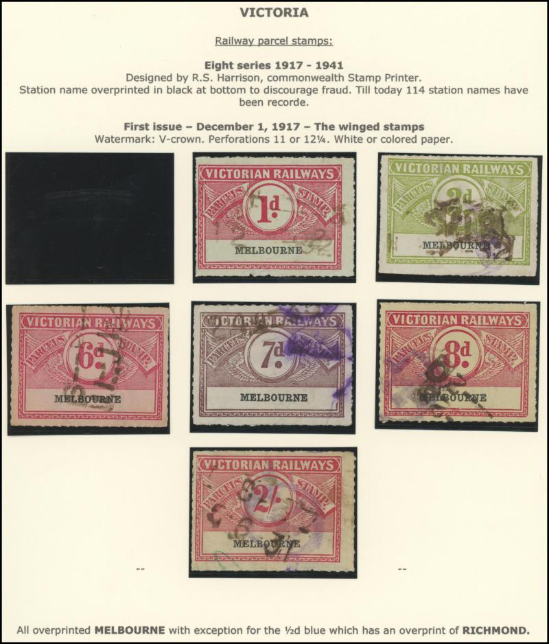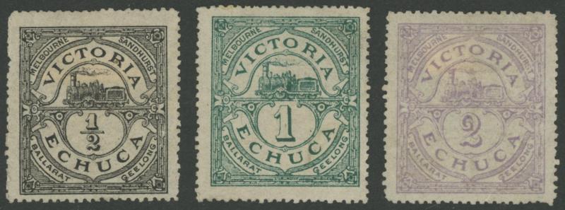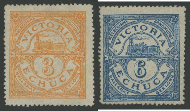 RAILWAY STAMPS: 1876 'VICTORIA/[locomotive]/ECHUCA' ½d black to 6d blue complete set, above-average centring, no gum. Believed to