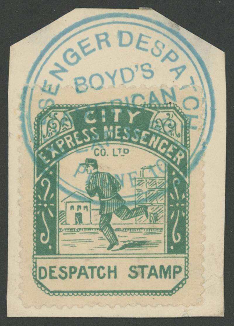 COURIER STAMPS: circa 1894 Boyd's 'CITY/EXPRESS MESSENGER' undenominated stamp in blue-green on wove paper, well centred, unusually