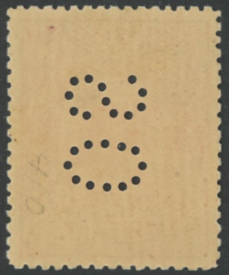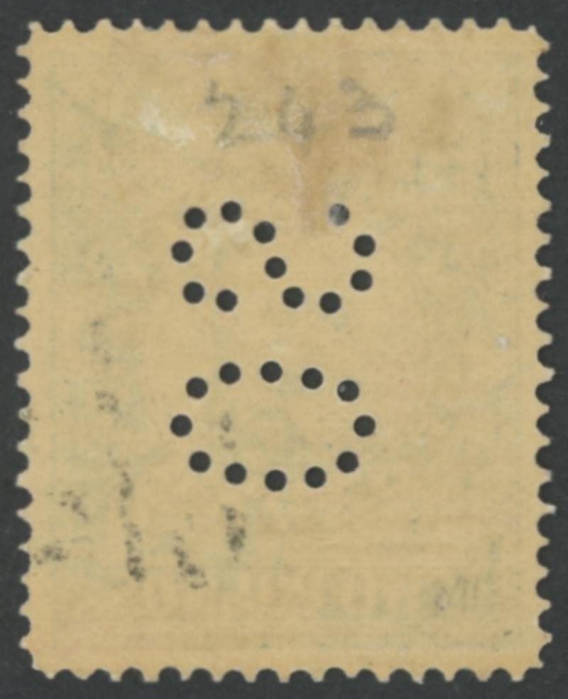 OFFICIAL STAMPS: 1905-13 KEVII 'POSTAGE' Crown/A Watermark Perf 12½ £1 rose as SG 431a punctured 'OS' Sideways (Reading Upwards)