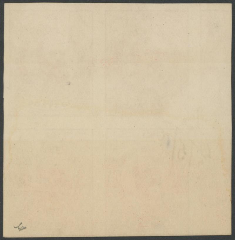 repaired; the stamps are unmounted) or in rosine (corner single rejoined with a pair; some spotting). A recent discovery and never before on the market. The labels were to be affixed to packets of pills and potions. See also Lots 861, 862, 975 & 982