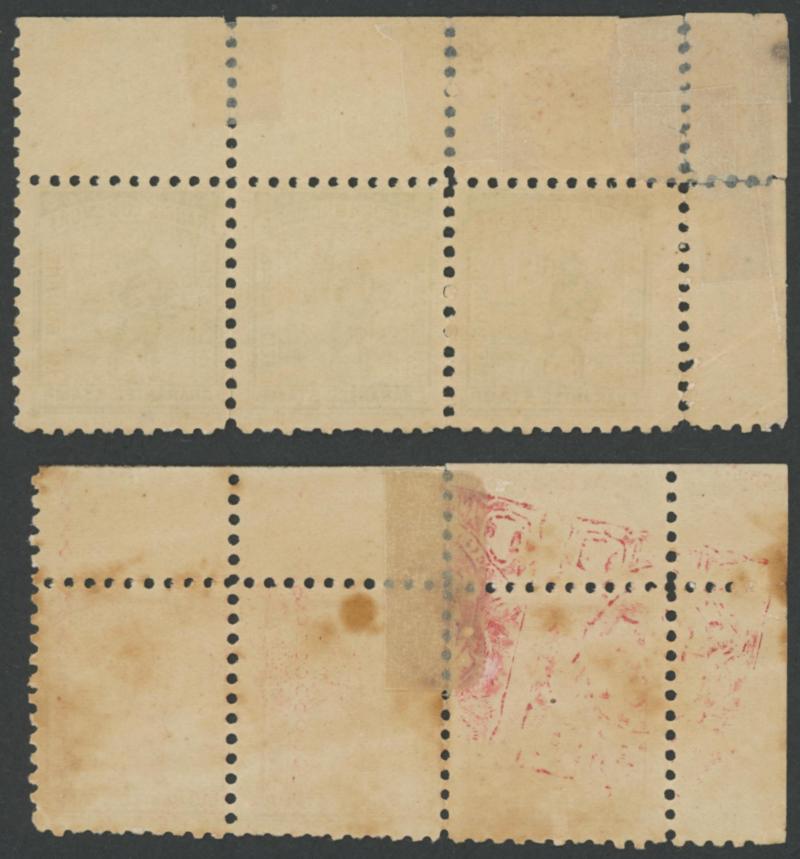 blemishes & light vertical gumbend across the three left-hand units, full unmounted gum. Ex 'Brussels Find': sold at our auction of 7.5.2013 for $2330 (Sale 180 Lot 427). The only recorded 2d multiple. (Image1) (Image2)