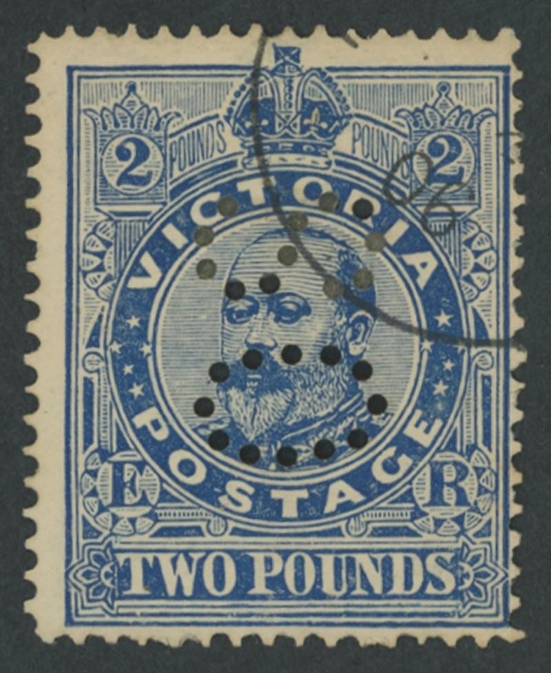 This is a very significant issue. Victoria's £1 & £2 were the only adhesive postage stamps from any State bearing the portrait of Edward VII. There were higher-value Postal Fiscals, but this £2 is the only postage stamp of that denomination and