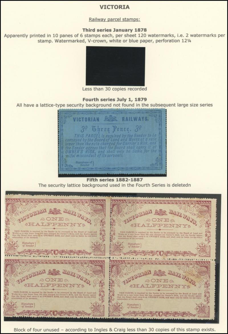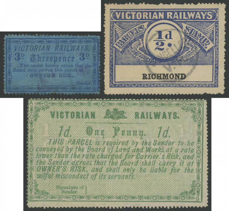 RAILWAY STAMPS: Selection from 1878 'OWNER'S RISK' 3d blue/blue, 1879 Lattice Background 1d green unused, 1882 No Lattice ½d purple