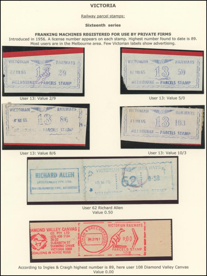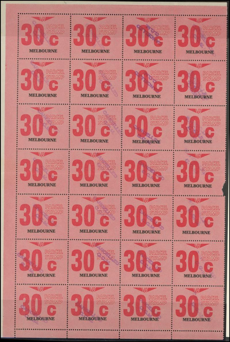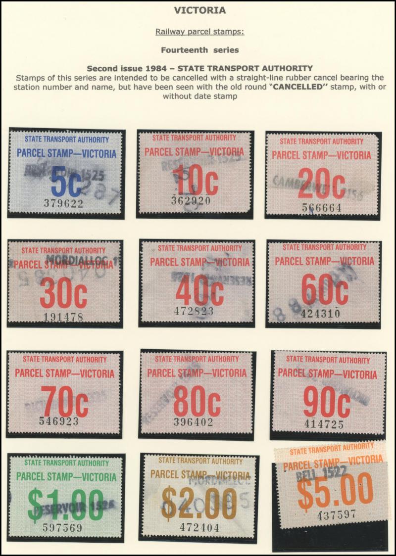 RAILWAY STAMPS: 1981 Victorian Railways 'Passenger Luggage' tag with 'MELBOURNE' 20c red & $5 orange single (faulty) & horizontal