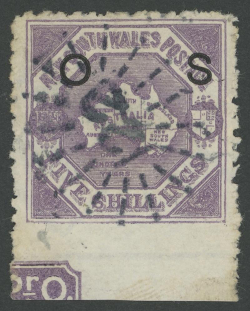 OFFICIAL STAMPS: 1890-91 Overprinted 'OS' Single-Lined Numerals in Diamond Watermark 5/- Map SG O49 marginal example from base of