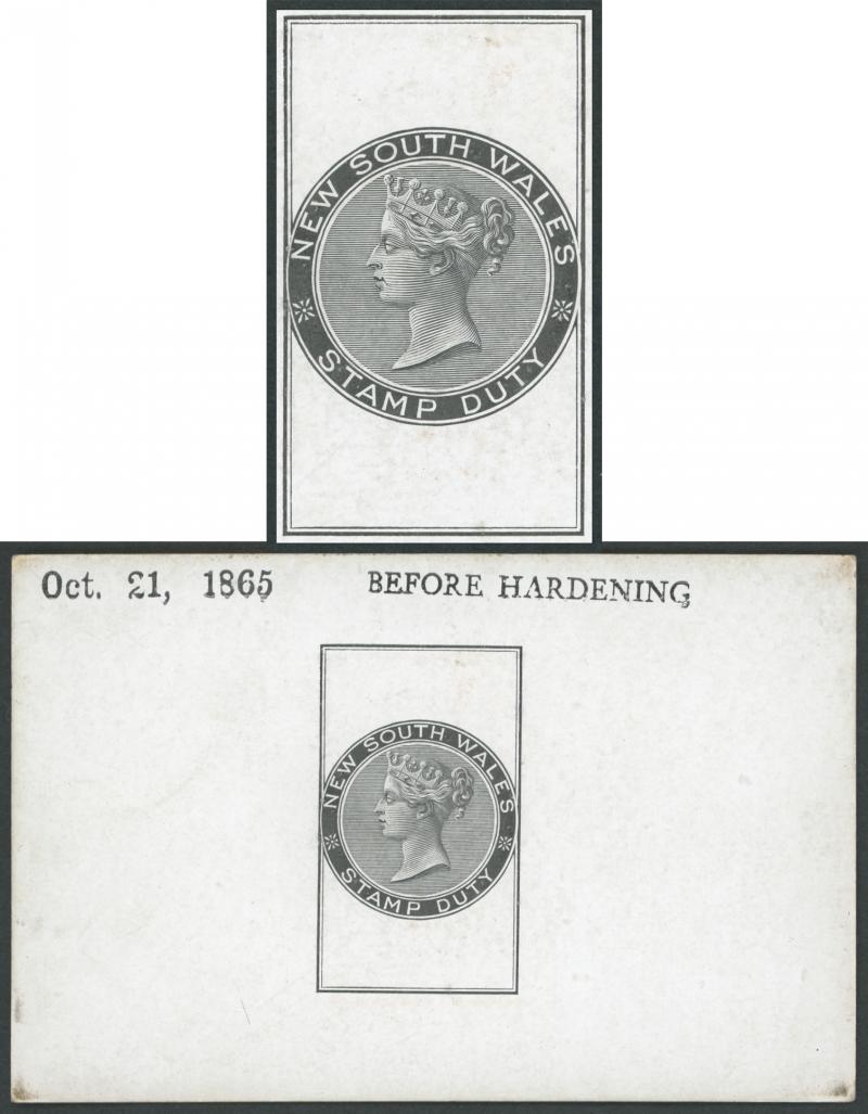 'Oct 21 1865' and 'BEFORE HARDENING'. Superb. Ex De La Rue Archives - not illustrated by Frank Walton - and Ron Butler: sold in 2004 for £1495. An important proof. (Image1) (Image2)
