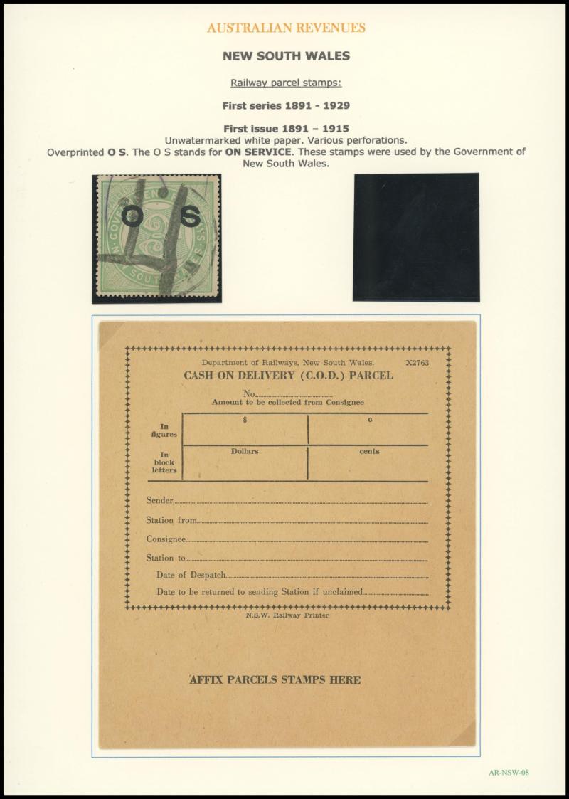 RAILWAY STAMPS: 1960 Department of Railways NSW 'CASH ON DELIVERY (C.O.D.) PARCEL' black/yellow label on parcel wrapping piece to