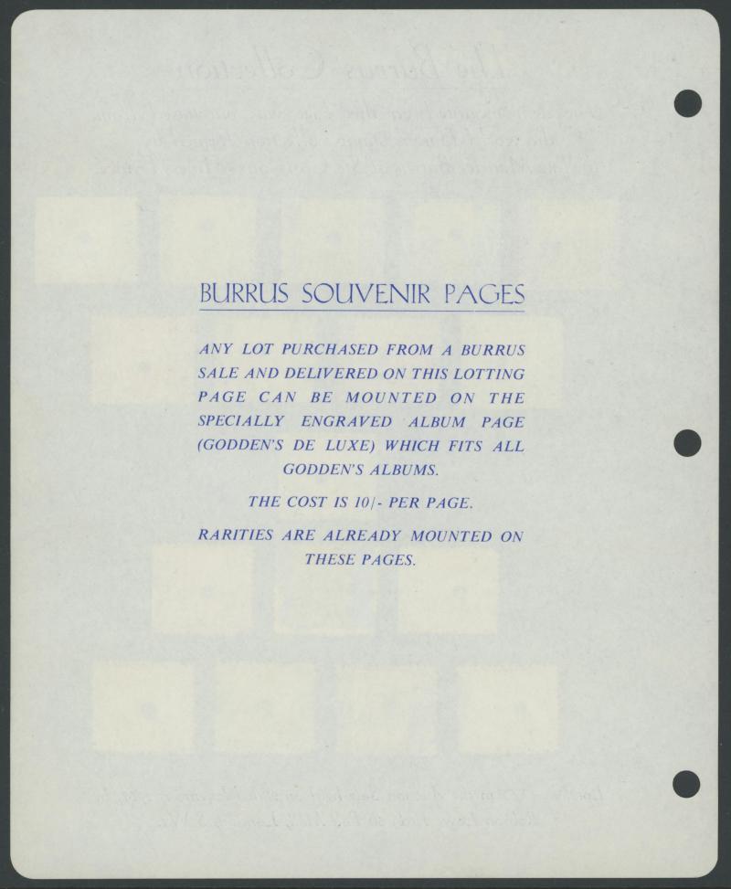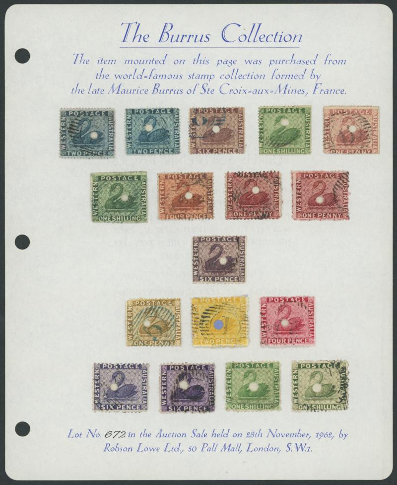 OFFICIAL STAMPS: Selection of Commissariat Punctures on Robson Lowe printed 'Burrus Souvenir Page' (28.11.1962, Lot 672) with