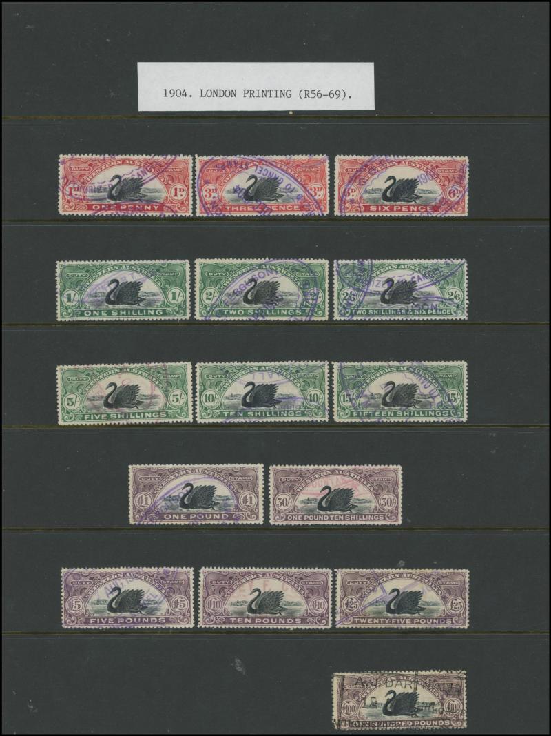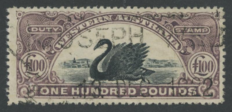 DUTY STAMP: 1904 Swan Bicolours Waterlow Printings W[Crown]A Type 5 Wmk £100 black & deep dull purple Dzelme R71 (RRR),