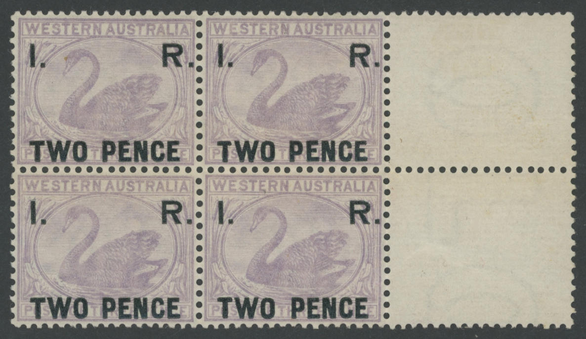Dzelme R4 block of 15 (5x3) postally used with multiple 'PERTH/DE8/85/W.A' unframed cds cancels. Gibbons no longer list this issue, stating that they were obsolete by the time the 1883 regulation authorised their postal use. However, there is no