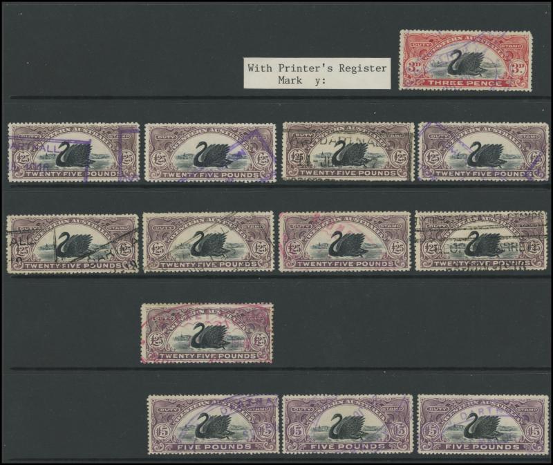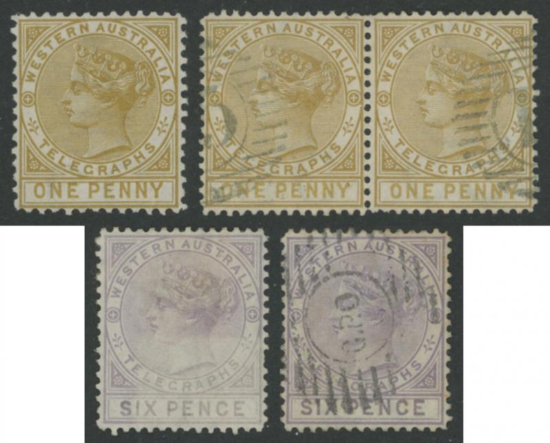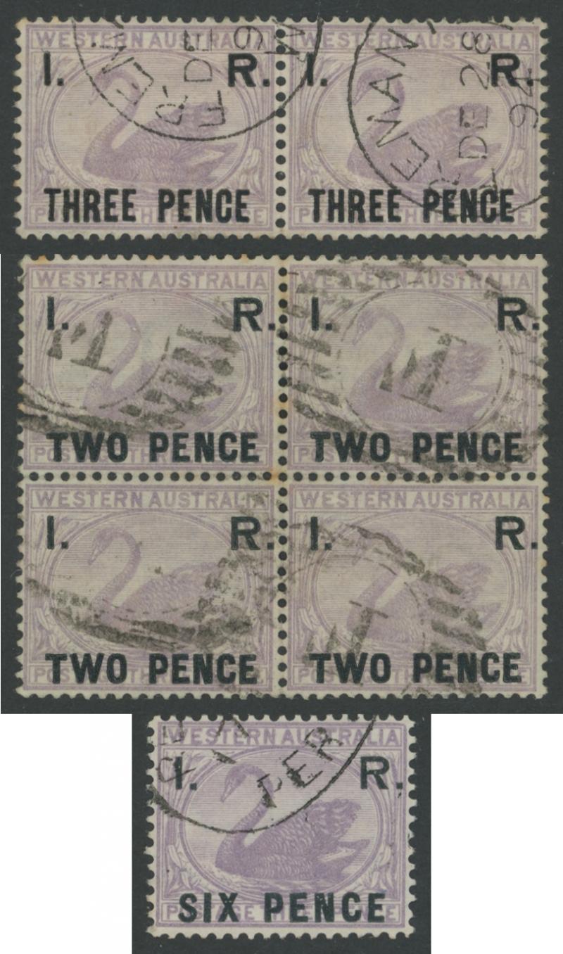 a horizontal pair, and 'SIX PENCE' x4 all with small-part Perth Registered oval cancels, condition generally fine to very fine. Gibbons no longer list this issue, stating that they were obsolete by the time the 1883 regulation authorised their postal