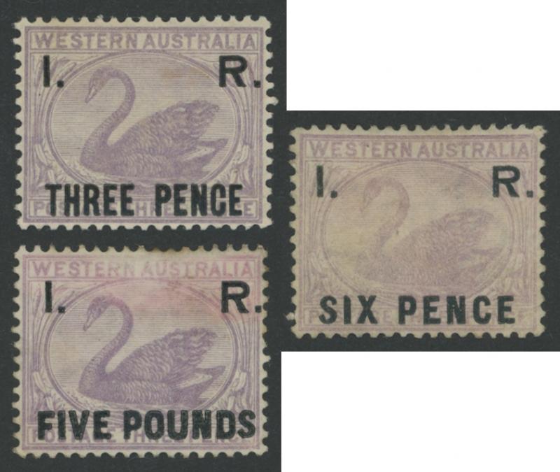 POSTAL FISCALS: 1881 unissued Swans 3d lilac Crown/CC Watermark with 'I.R./...' (= Internal Revenue) Overprints selection