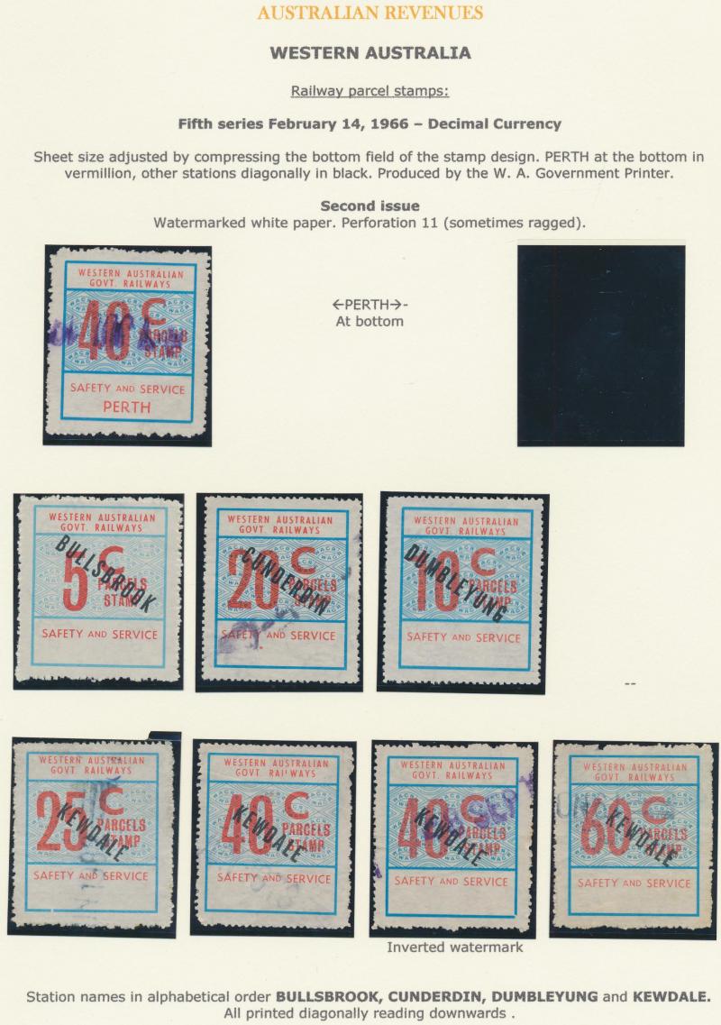 Diesel 9d & 4/-, 1966 Decimals 'Safety & Service' 5c, 10c, 20c, 25c, 40c & 60c with station names Bullsbrook, Cunderdin, Dumbleyung & Kewdale, plus 1970s Westrail range mint & used, condition a little variable but generally fine to very fine.