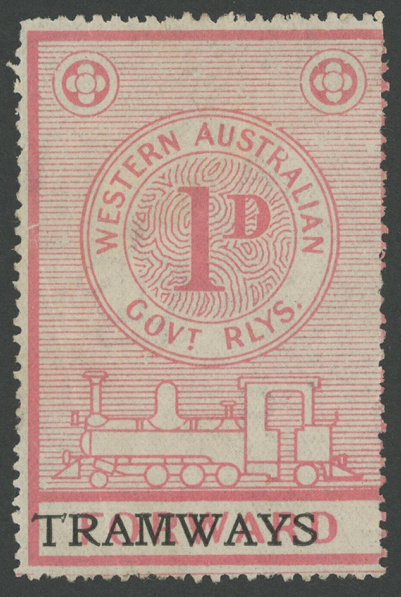 RAILWAY STAMPS: 1923 Large Locomotive 1d rose-pink with 'TRAMWAYS' overprint obliterating 'FORWARD', characteristic wayward