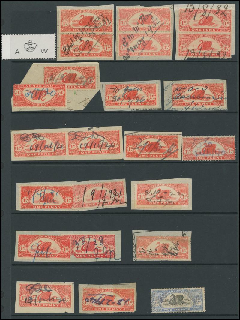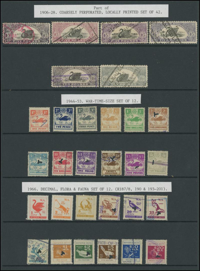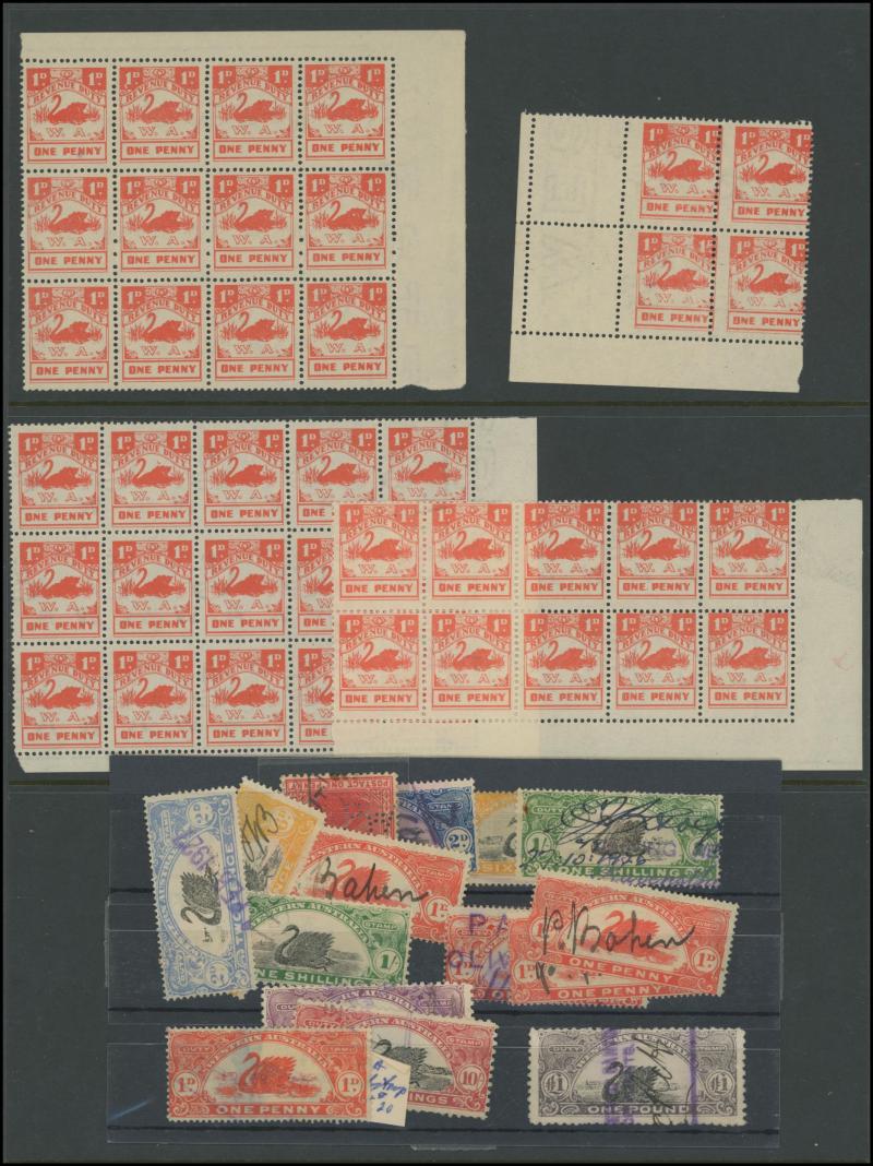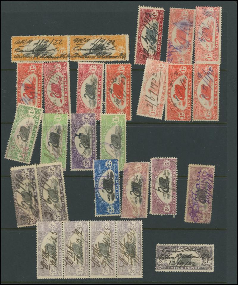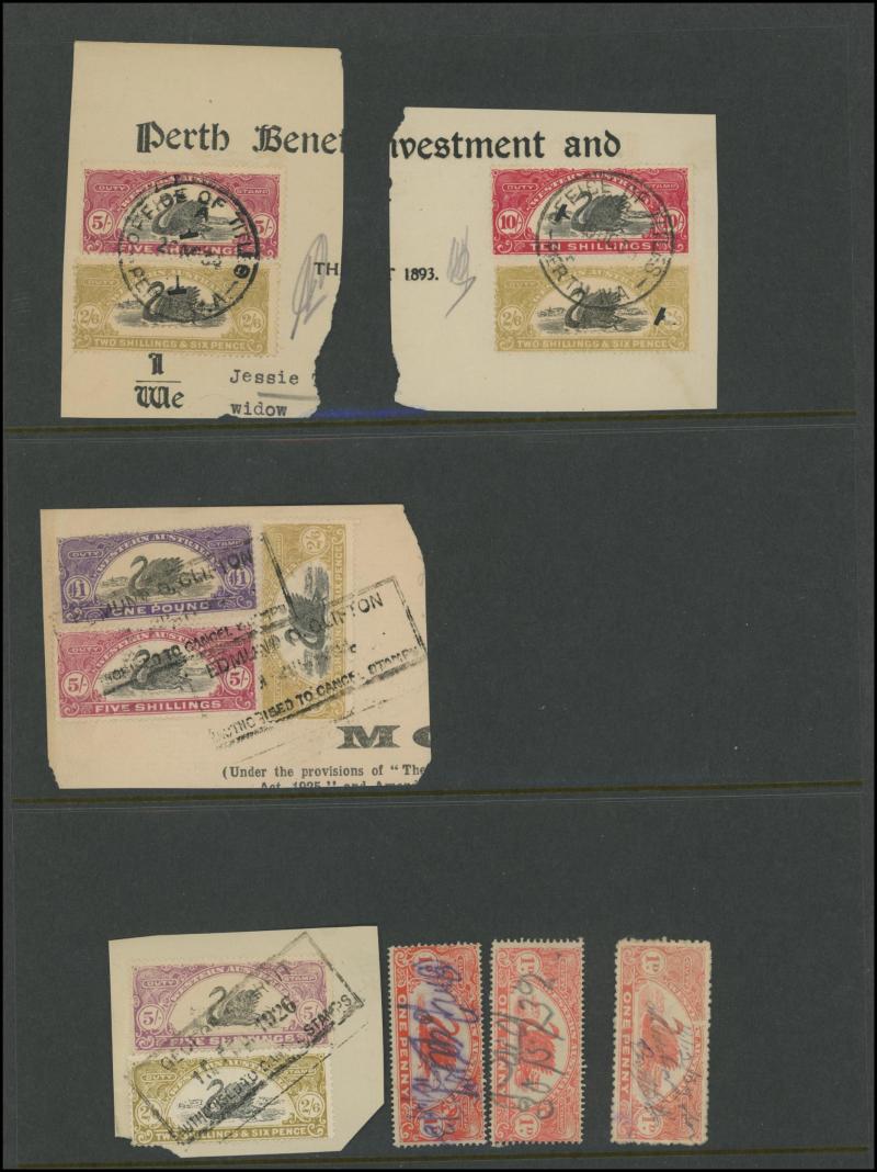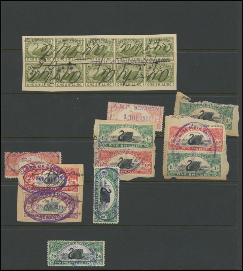 DUTY STAMP: Swans used accumulation including Waterlow Printings set to £100 (ex £50) with plenty of extras including £5 x24, £25