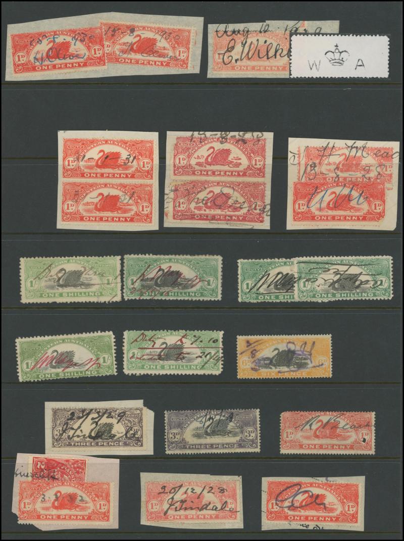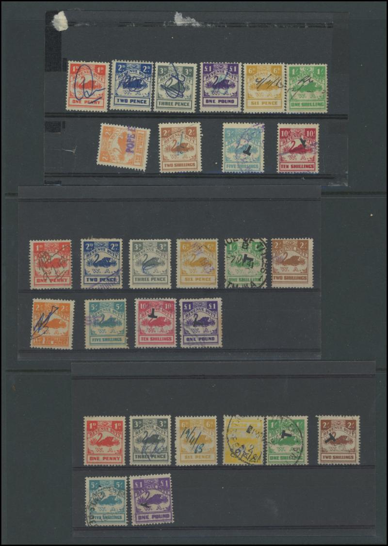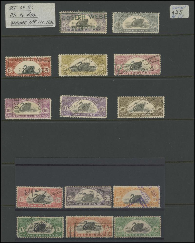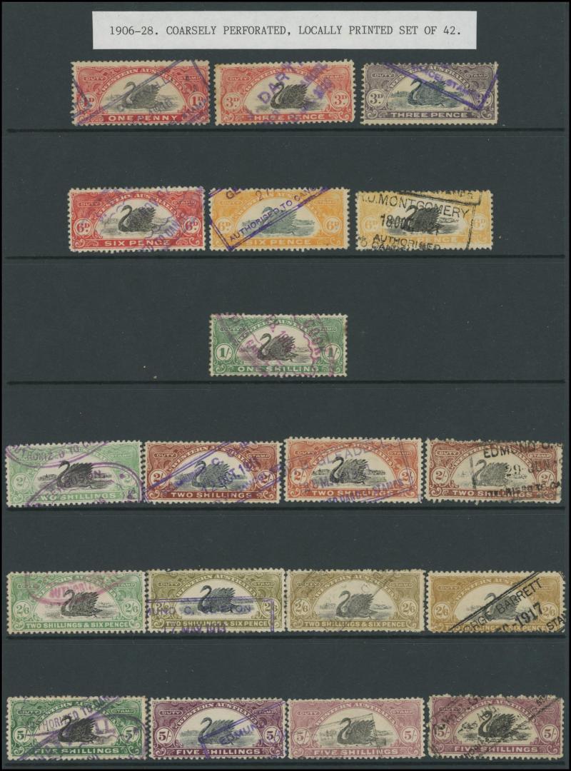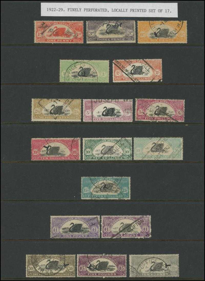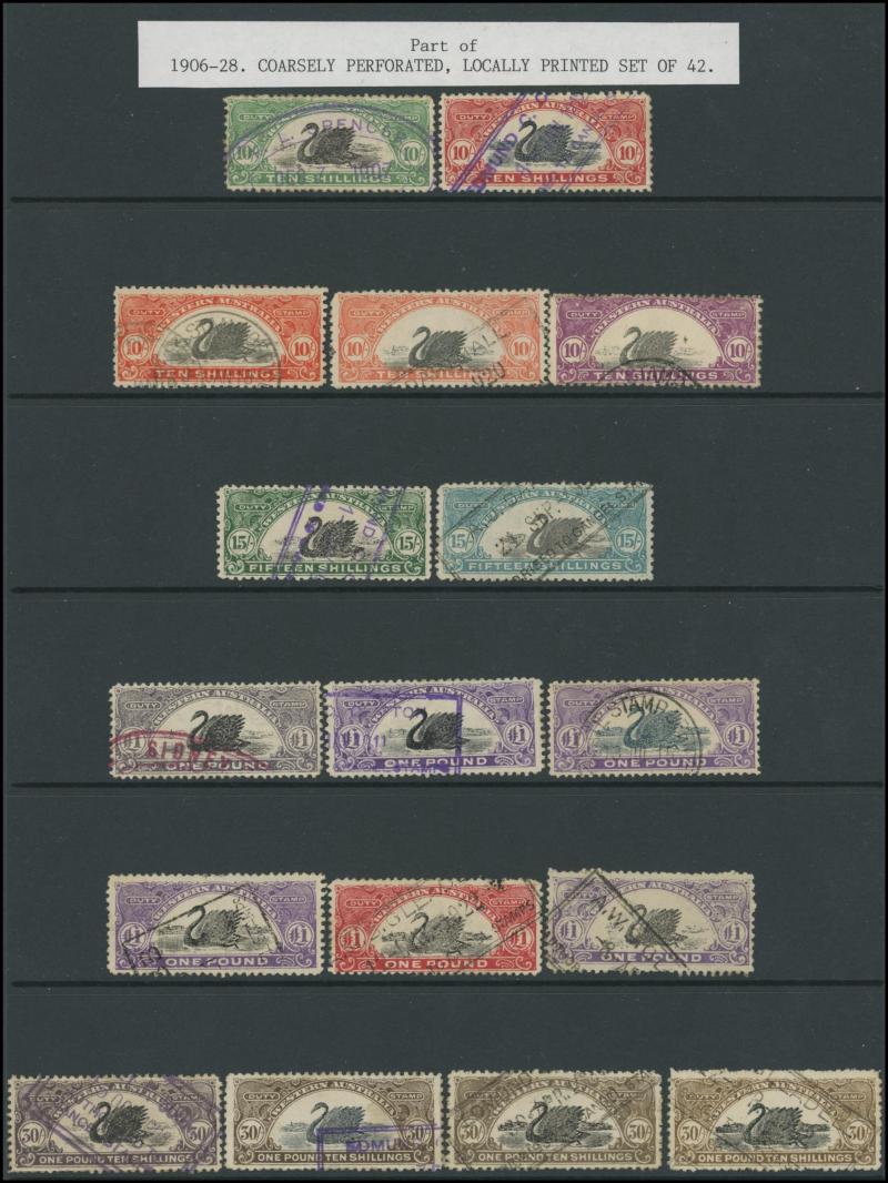 range to 10/- x2 with printed 'PERTH' & 'MANJIMUP' overprint respectively, condition a little variable but generally fine to very fine.