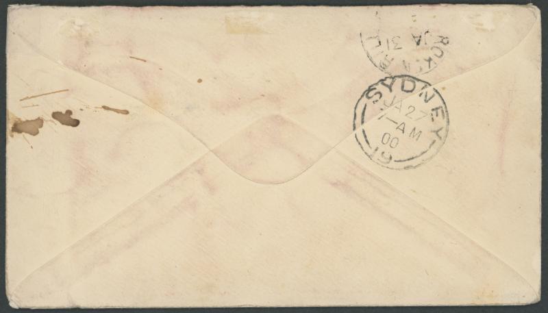 was doubled & a NSW Jubilee 2d affixed in lieu of Postage Dues & tied by the scarce oval 'BROKEN HILL/11JA00/NSW' datestamp in violet, minor blemishes. A cracker! Ex Bill Hart (1993) and Dr Cecil Walkley: sold at our auction of 27.11.2010 for $3960