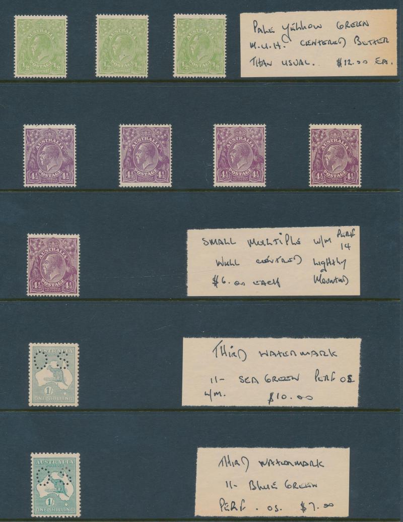 plus an extra stockbook and stocksheets with a good range of additional KGV Heads and amongst other pickings such as 1/- ANZAC Imprint pair **, another BCOF set **, condition overall is fine but it is a mix of unmounted, mounted and used and priced