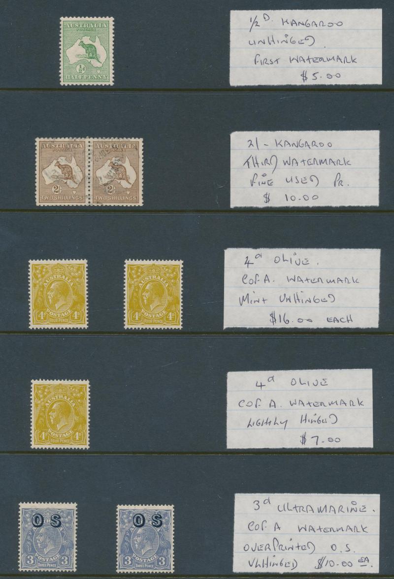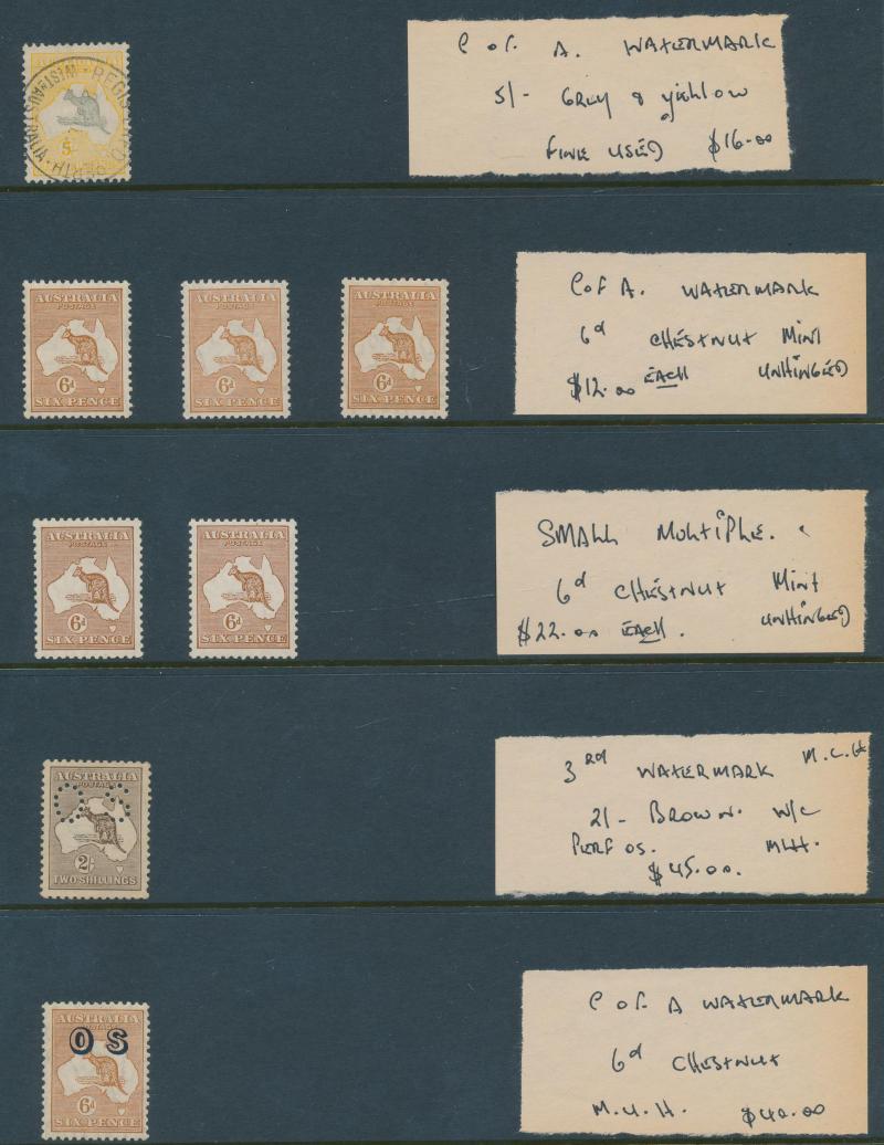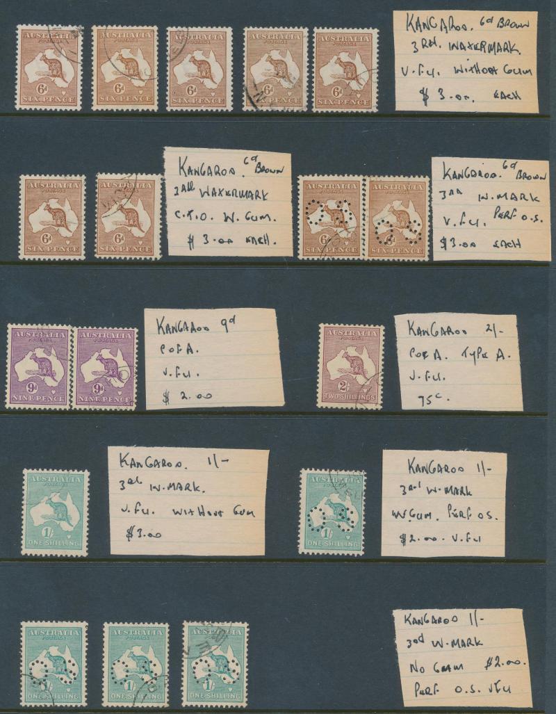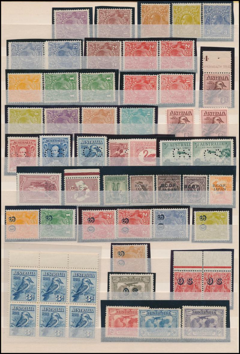 Ex-dealer's stock of Kangaroos to 5/- and KGV issues including punctured 'OS', overprint 'OS', shades & watermark varieties, CTO,