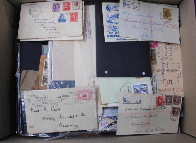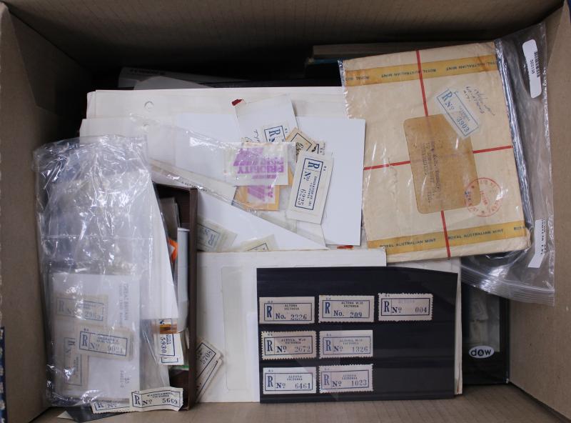 registration labels; predominantly Victoria, modern Australia CTO including M/Ss, FDCs, small amount of postage, condition mixed. Weighs 49kg.