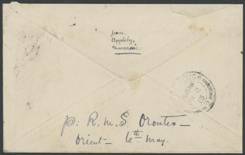 solo tied by light 'NEWCARNIE/WESTN AUST' cds, endorsed on the reverse "p RMS Orontes/Orient 6th May", slightly trimmed at left and a few minor blemishes. (Image1) (Image2)