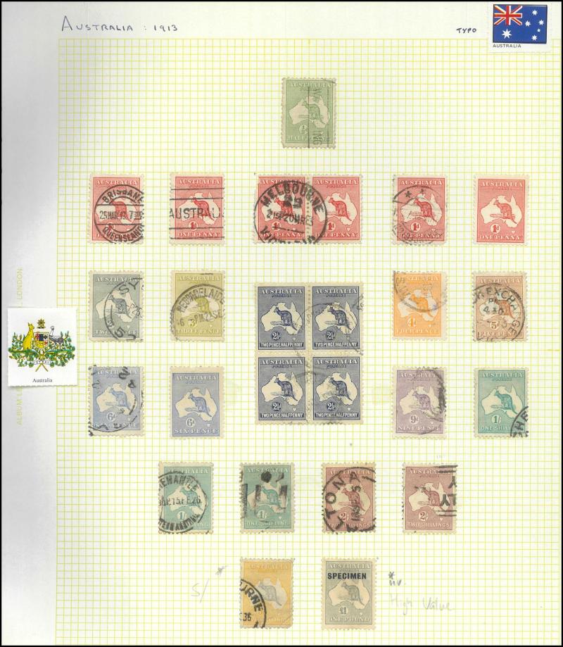 Pre-Decimal Collection containing many useful bits and pieces including range of Kangaroos and KGV Heads through to 1965, noted £2