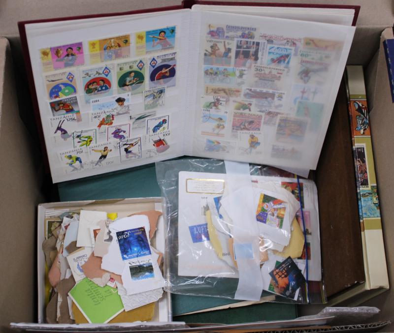 stockbooks with some **, pedestrian world in stockbooks, plus some empty stockbooks, hinges and stockcards, condition variable. Weighs 23kg.
