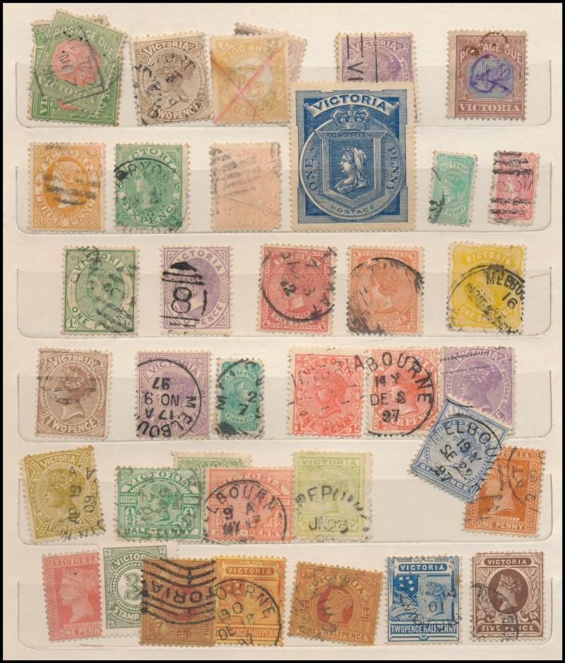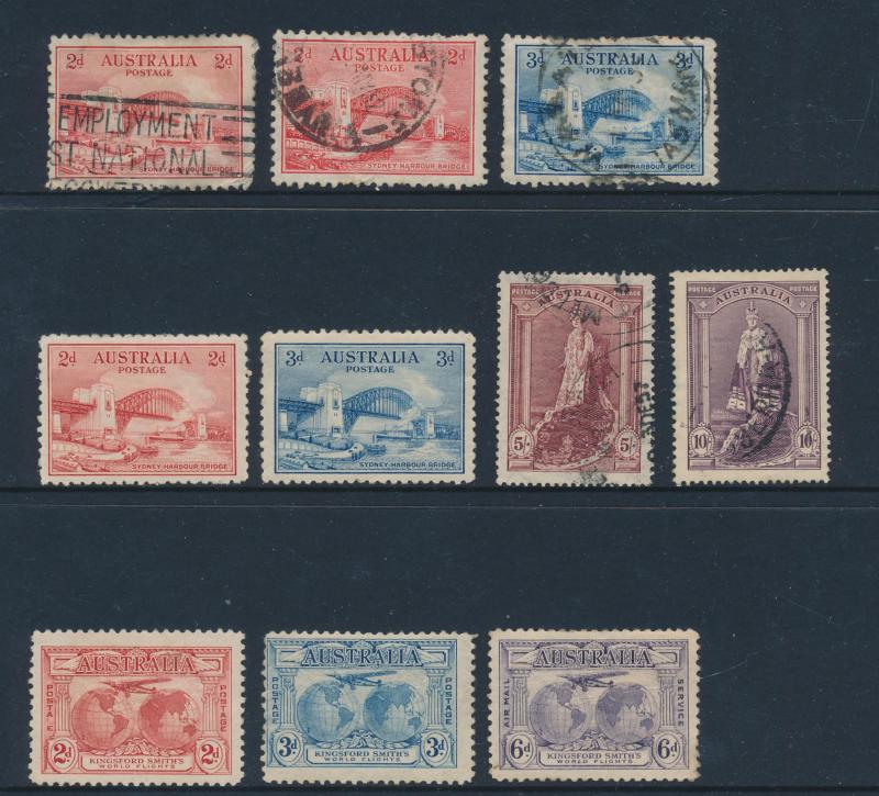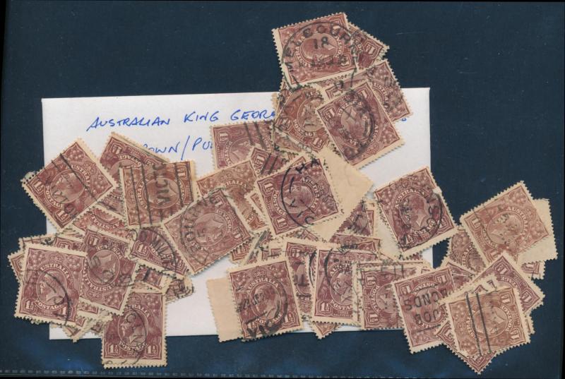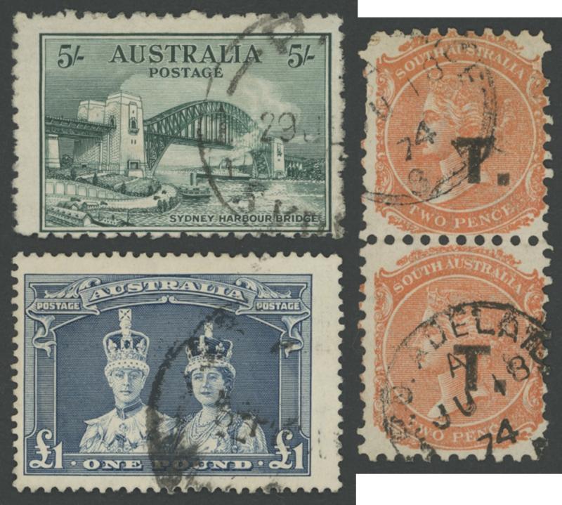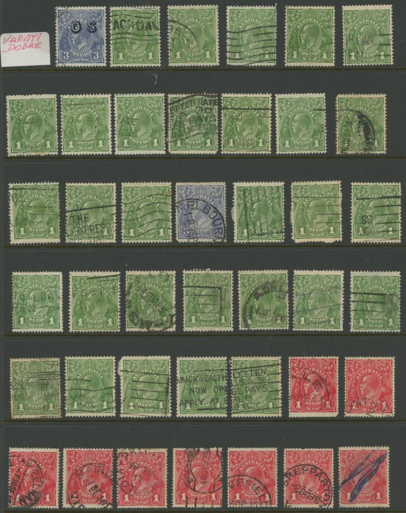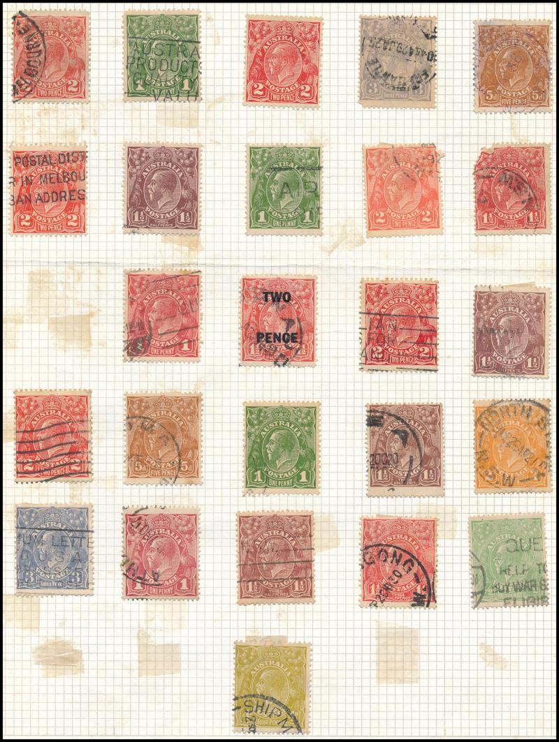 Pre-Decimals used including KGV private perfins, Harbour Bridge 5/- postally used, and Robes to £1; plus stockbook of KGV Heads 2d reds, some basic Worldwide, etc, condition variable.