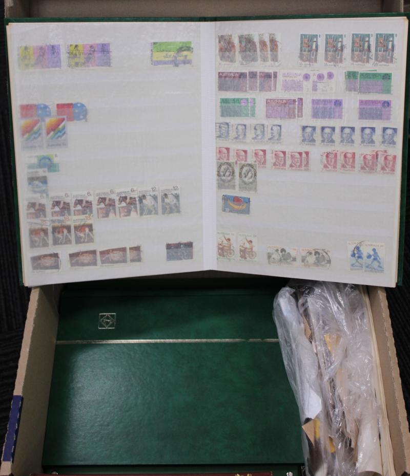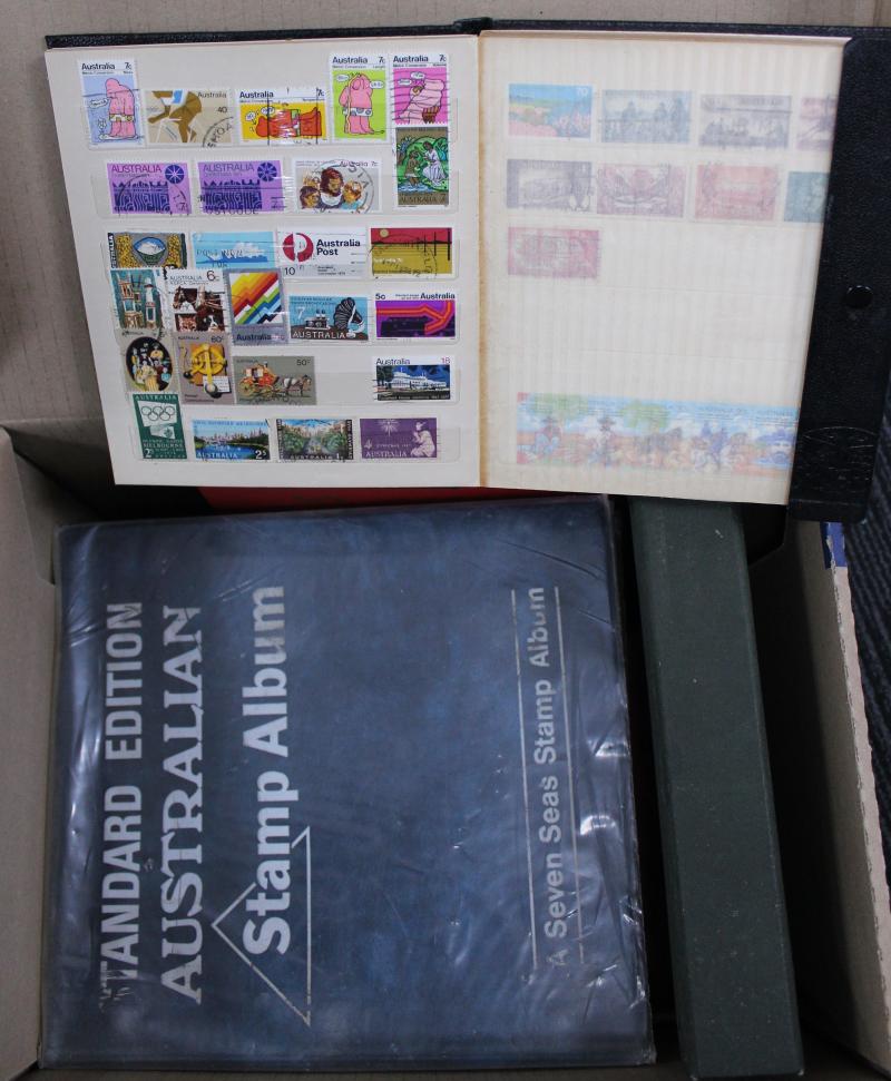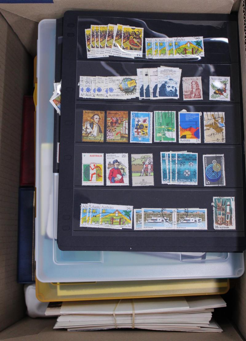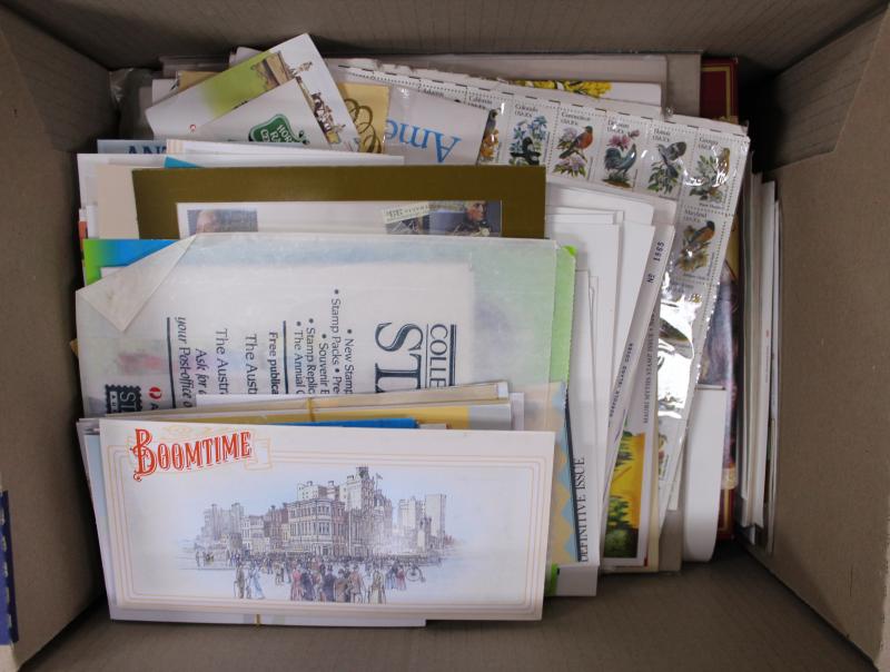 Accumulation in three cartons containing Australia & Worldwide in albums, presentation packs, FDCs including modern New Zealand,