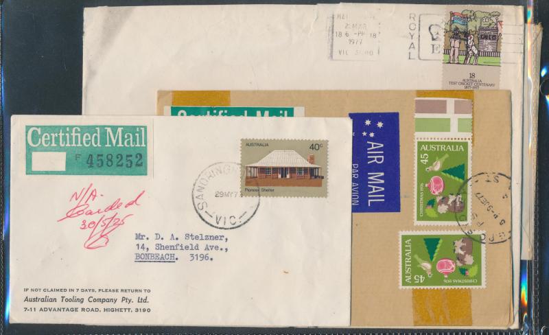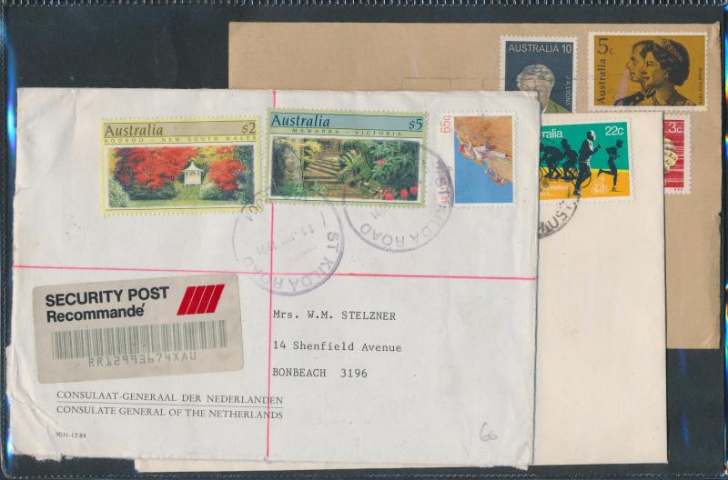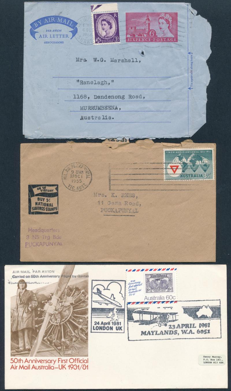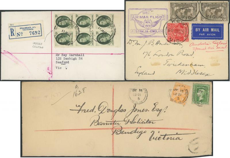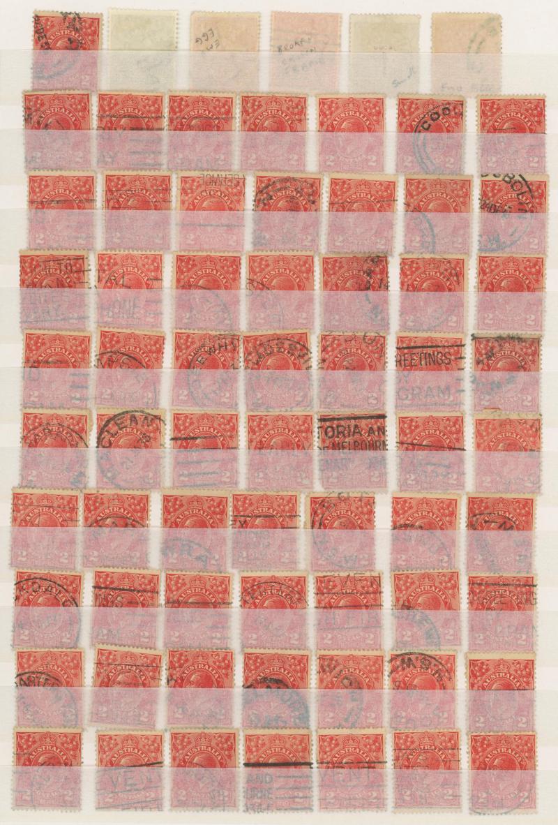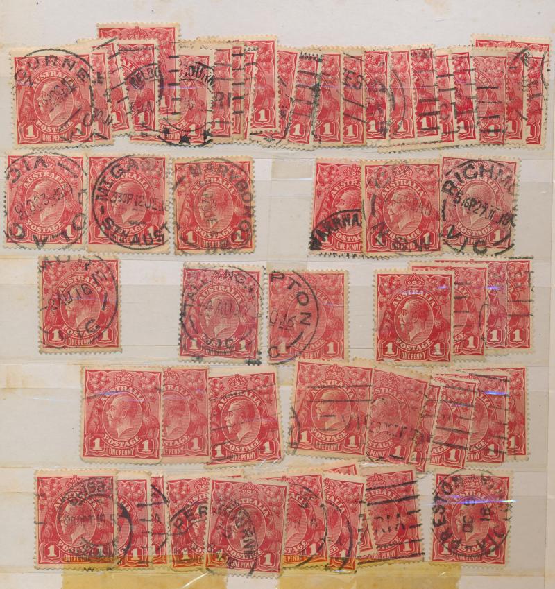 blocks noted 3d Kookaburra block of 39 (10x4; one missing), Decimals with a little postage and plenty of FDCs, PSEs, commemorative cancels, a few Flight covers, etc, also a little worldwide with pickings including Tonga & Fiji covers, Indonesia 1950