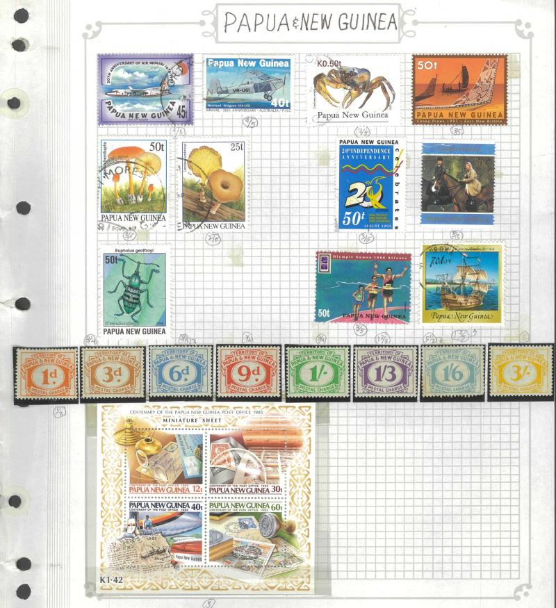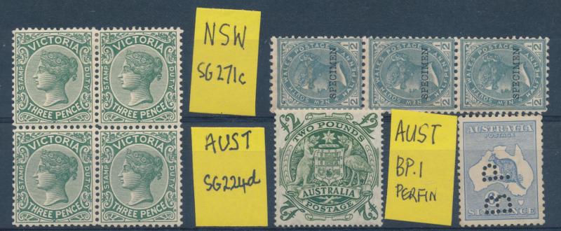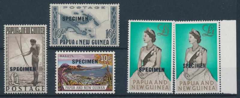 Rough Paper * & Shiny Paper *, both top values used, Norfolk Island noted Ball Bay White Papers * and PNG noted 1952 SPECIMEN opts ** x4, 1962 SPECIMEN opts ** x5, also Japanese Occupation of Malaysia, plus Decimal Australian bundleware in