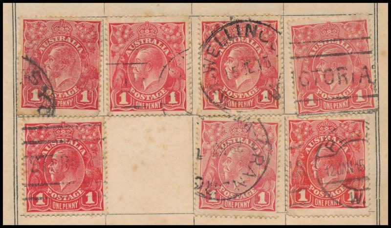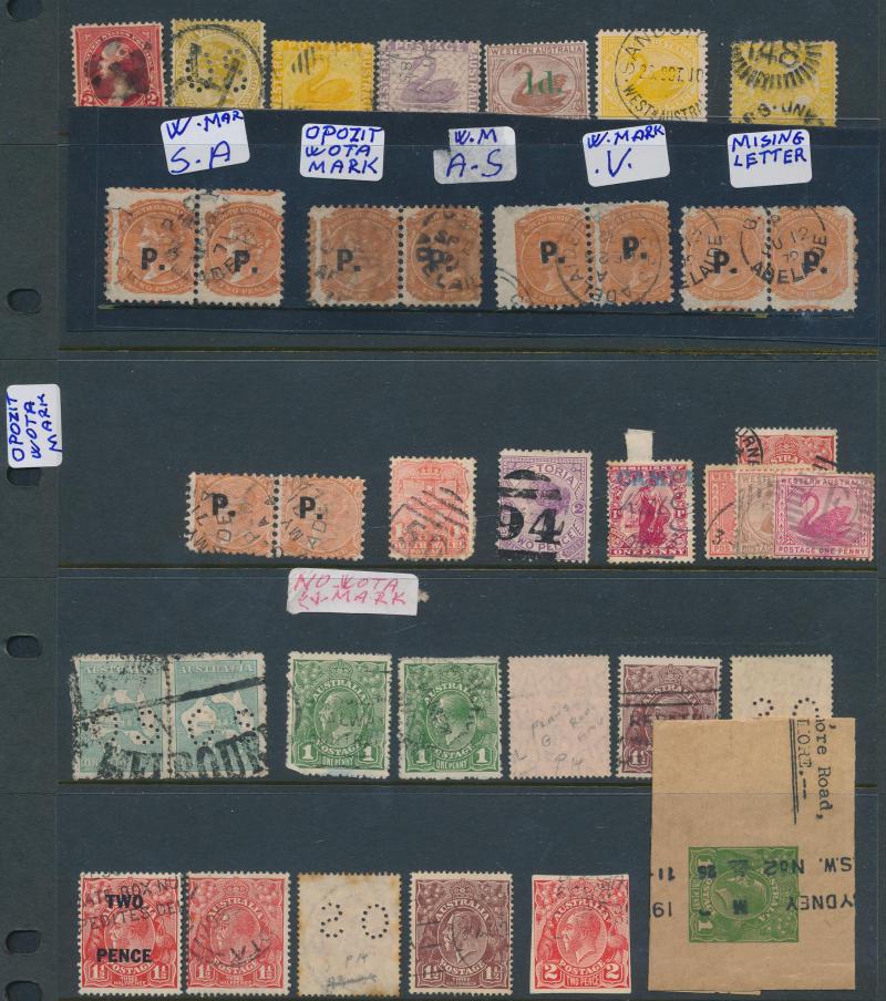 Hagners with South Australia departmental pairs comprising 'P' (Police) x5 Wmk '[Crown]/SA' & '[Crown]/V', and 'T' (Treasury);