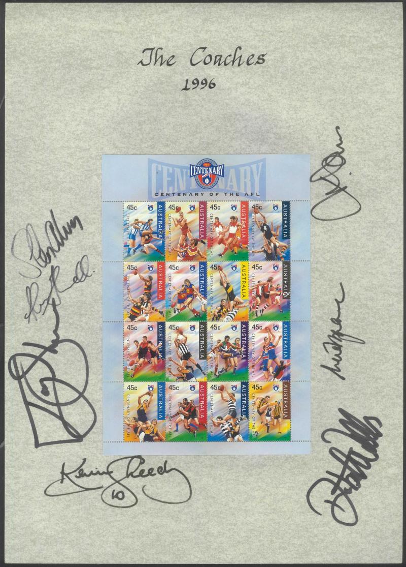 **, also used world and 1996 AFL Centenary sheets with Captain and Coaches signatures. Weighs 22kg.
