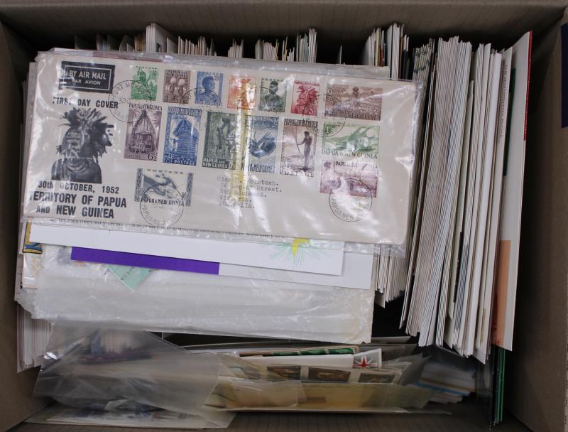 varieties and perfins, FDCs, registered and First Flight covers and postmarks, also Yearbooks 1981-'91 (ex '82) and postage with face value $840; plus New Zealand, Fiji, Papua New Guinea *; condition variable. Weighs 32kg.