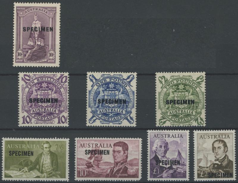 Flinders short corner perf; £2 Overprint at Lower-Right), mounted some with hinge remainders.