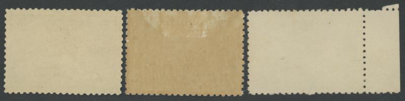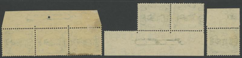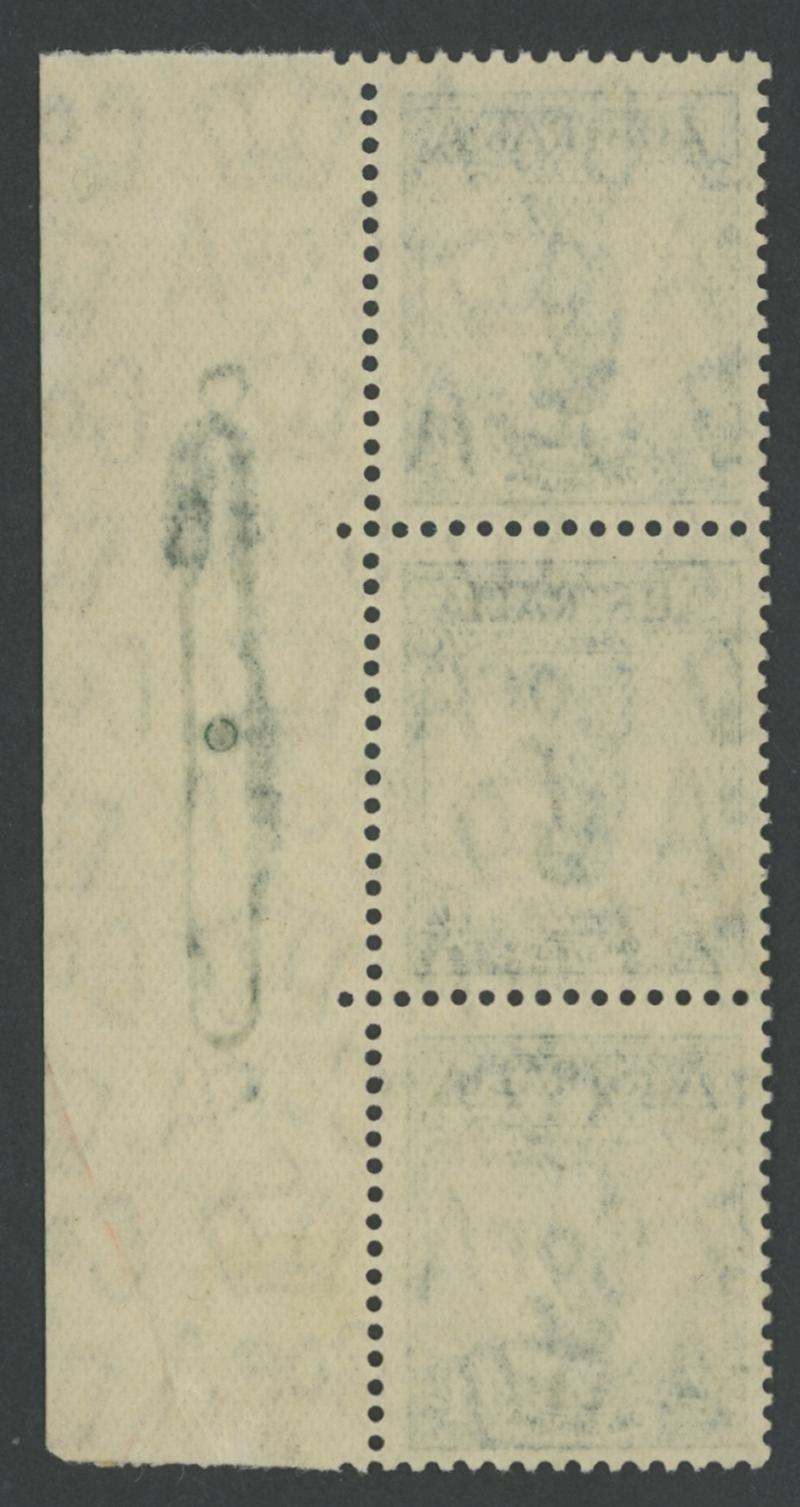 upper units lightly mounted otherwise unmounted, Cat $8100+ for an unmounted imprint strip of 3 plus another unmounted single and two mounted singles (£2250+ for mounted singles). (Image1) (Image2)