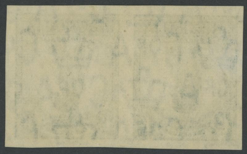 right-hand side of Sheet B ACSC 208bc, stained, Cat $950, plus two other part-pieces from other plates. Caused by a failed experiment whereby a perforation alignment device was attached to the plate. Not surprisingly, the constant pressure from the