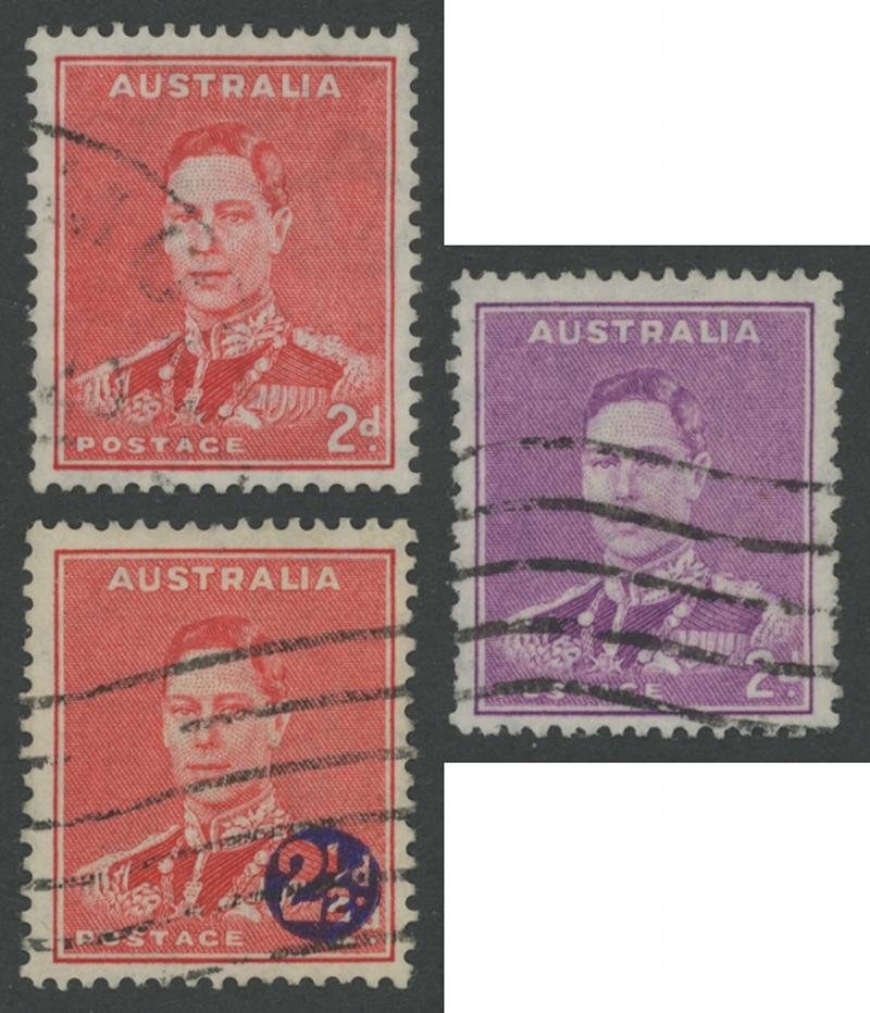 1937-49 Definitives KGVI 'Medallion Flaw' on 2d red, 2d mauve and '2½d' on 2d red ACSC 188e 189e and 222d (SG 184b185b and 200b),