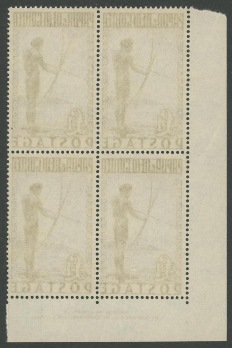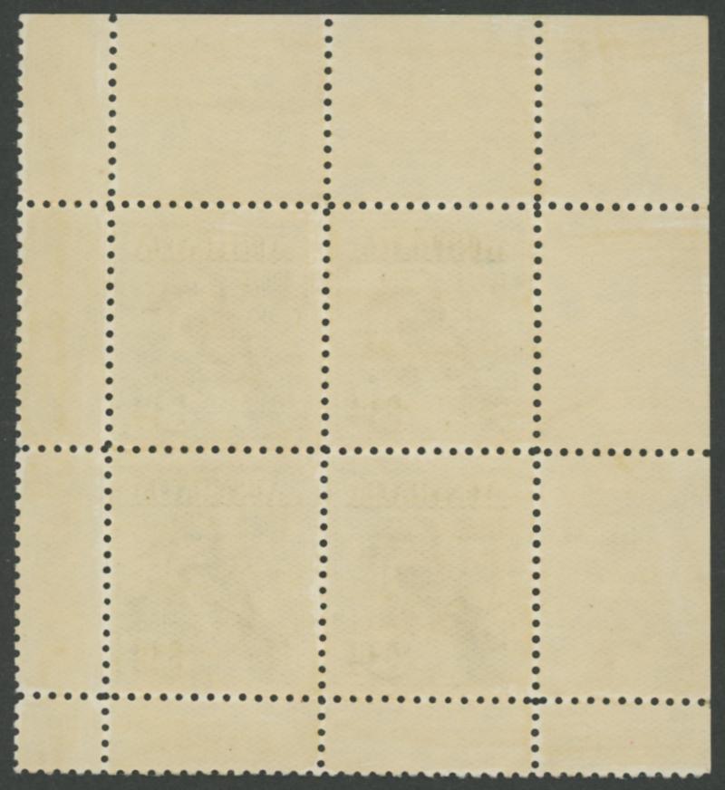 (perforated margins all around) and one from right margin of centre row, Cat $450 (£260). (Image1) (Image2)