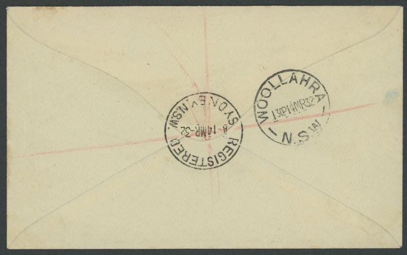 to plain envelope to Woollahra ACSC 148y, blue & black/white R label, Sydney transit & 'WOOLLAHRA' arrival backstamps, some light toning around perfs, Cat $5500. (Image1) (Image2)