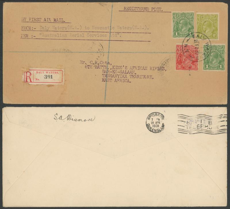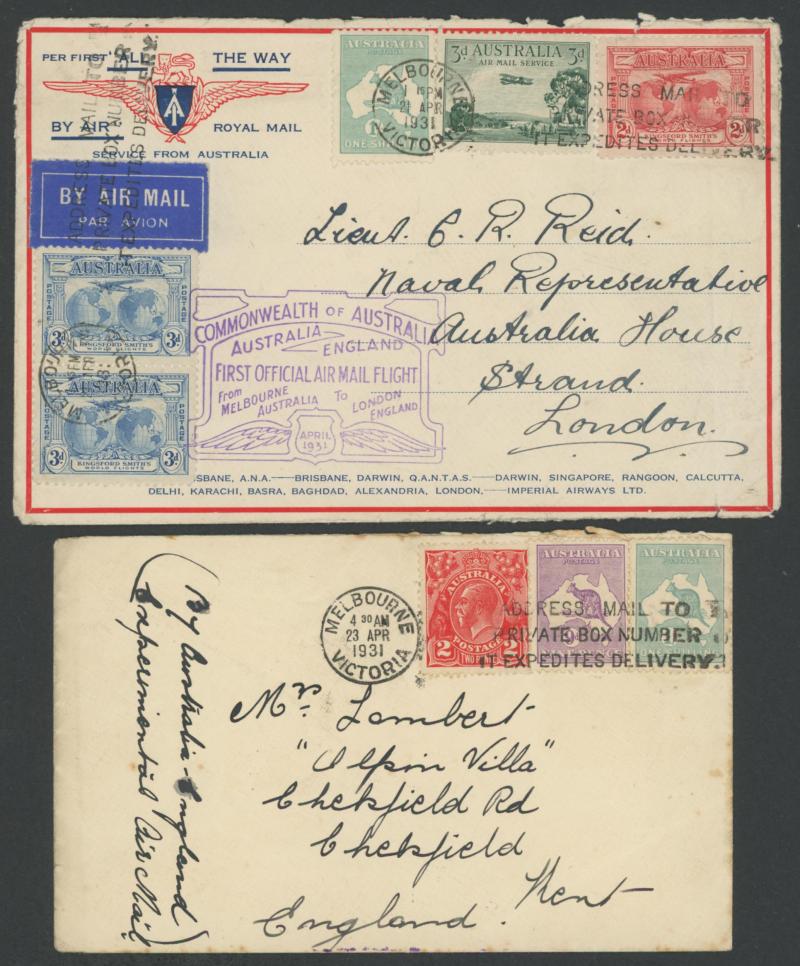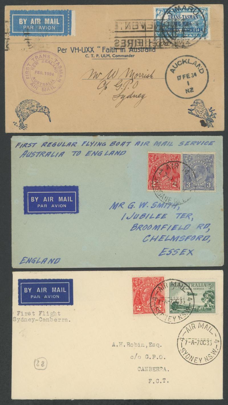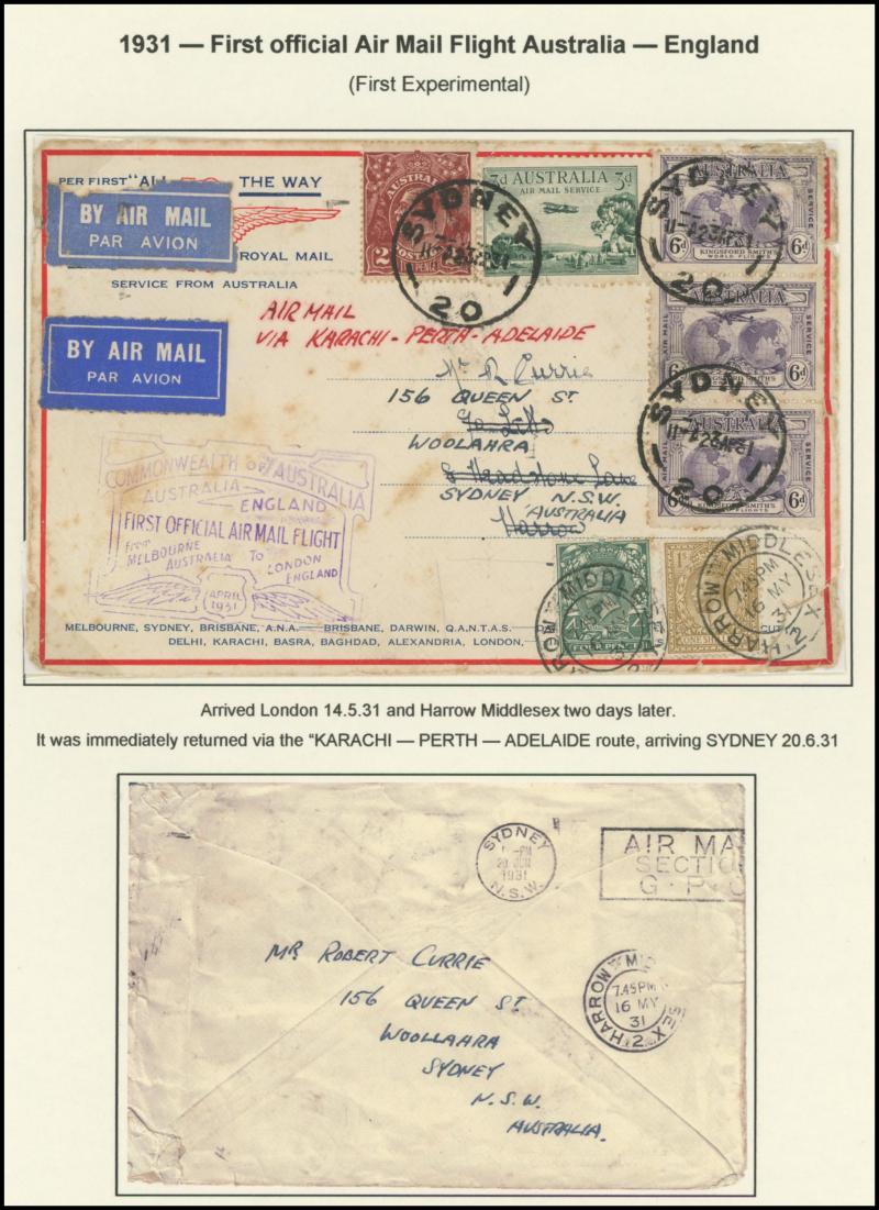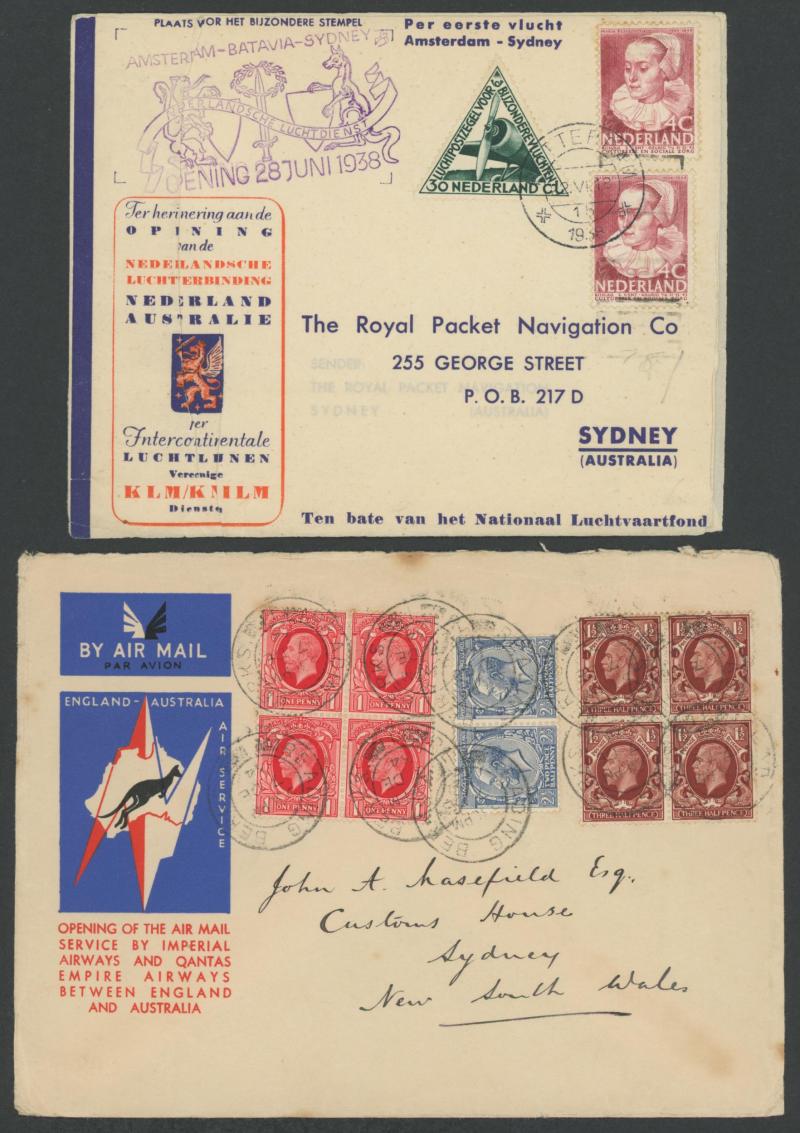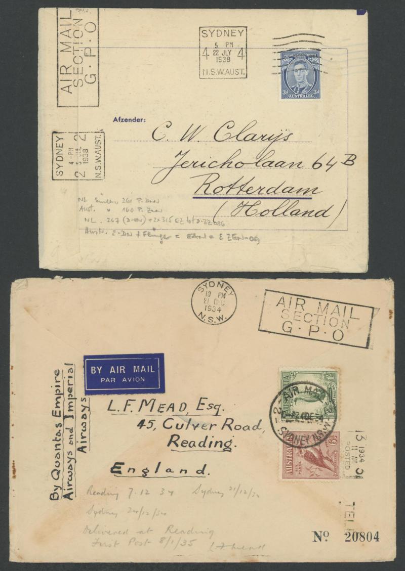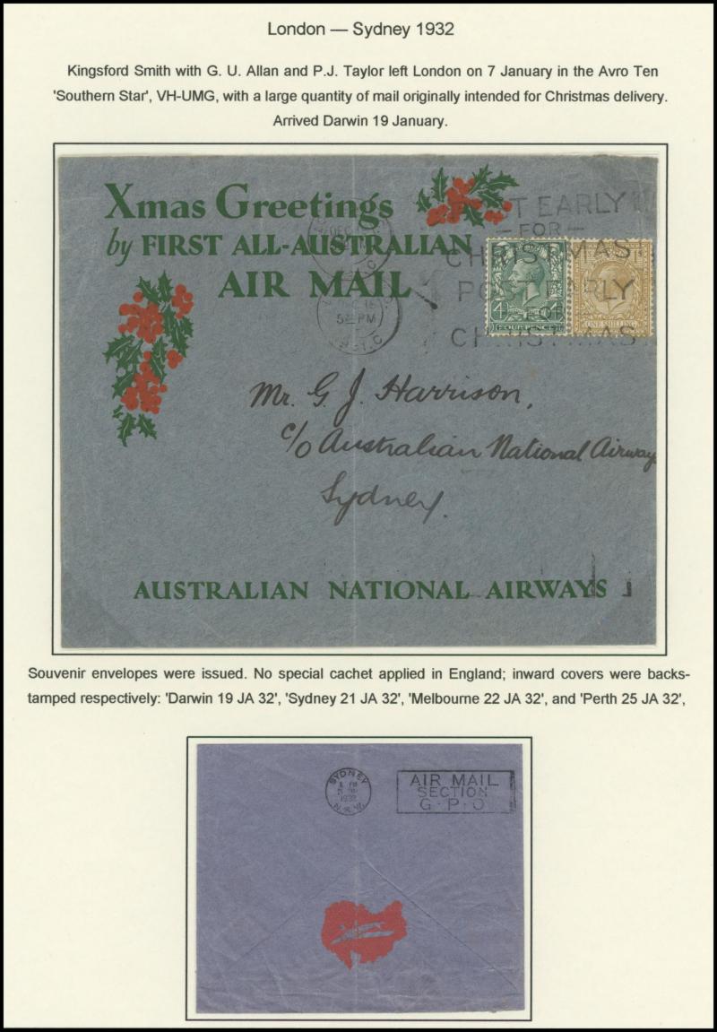 light folds clear of the stamp, Cat $575. Held at Brisbane to be carried on the inaugural air service to England, departing Brisbane 8.8.1934.