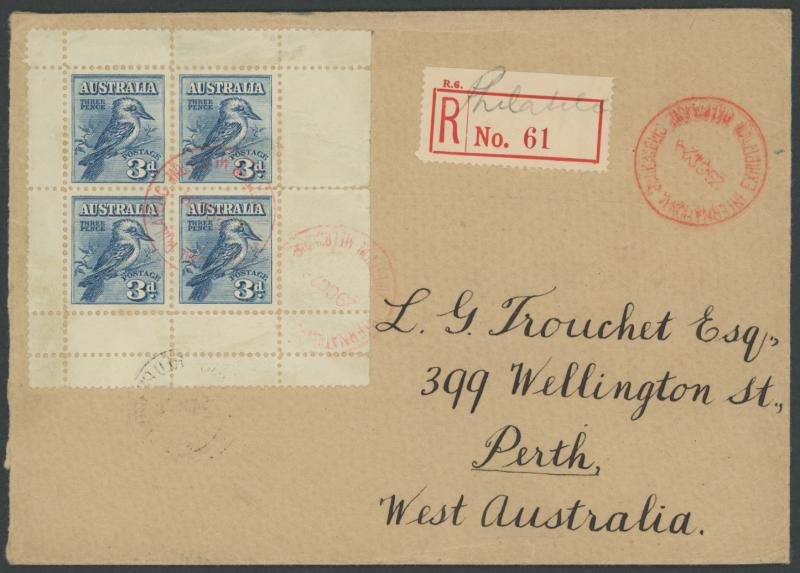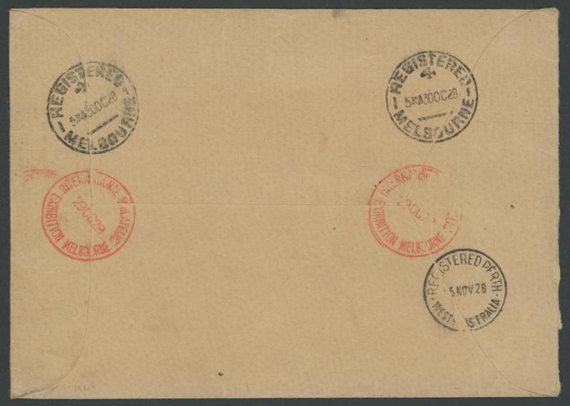 with another strike on the face ACSC 133MSy, red/white provisional R label with manuscript 'Philatelic', Perth arrival backstamp, Cat $1750.