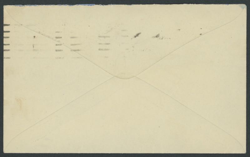 inscriptions crossed-out, minor tonespots and tape repair on the flap, Cat $8500. Apparently commercial. The ACSC states "at least eleven covers exist with a single, pair or block of six". It was commonplace for the early Commonwealth issues to be