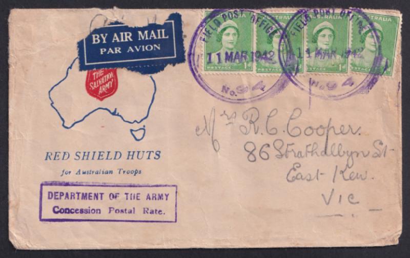 1942-45 World War II Torres Strait Force group including Field Post Office 'No.94' double-ring rubber in violet & in black used at