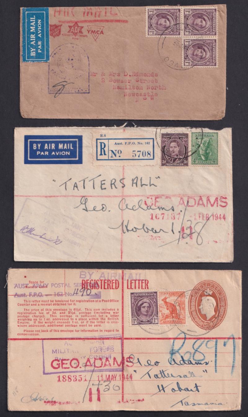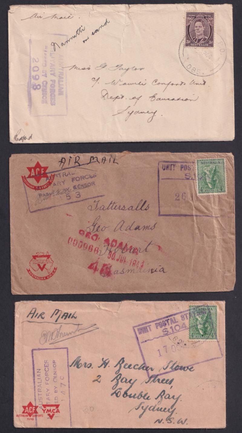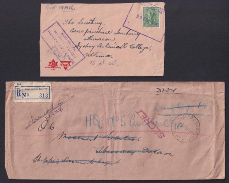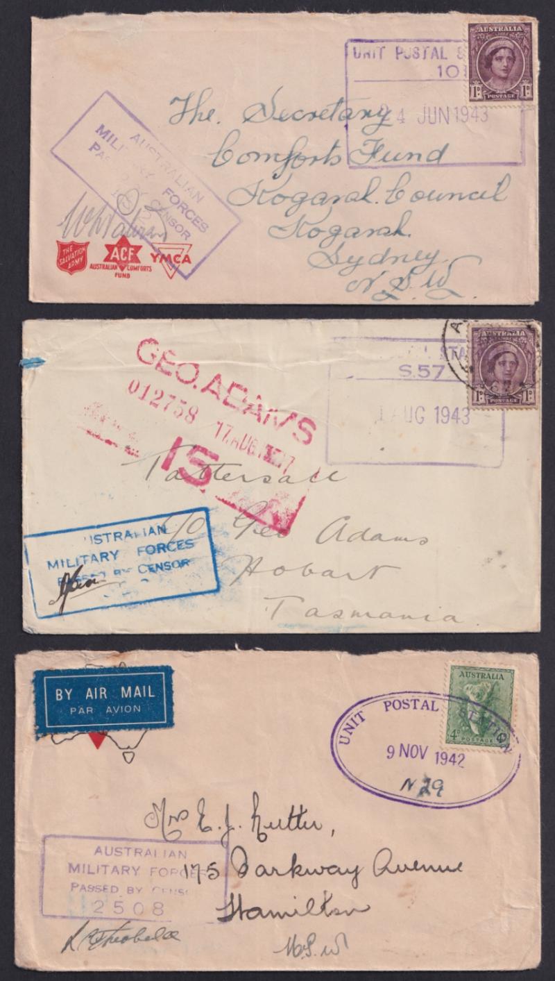(one with 'AUST FPO 162' cachet on blank R label) and from UPS 'V 52' both used at Higgins Field air base, also Official Mail, Comfort Fund envelopes, civilian censorship, a few inwards items one OHMS registered to "Movement Control, Thursday Island"