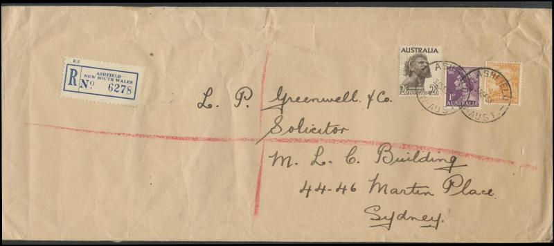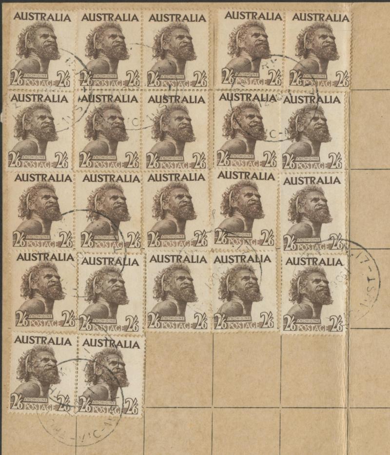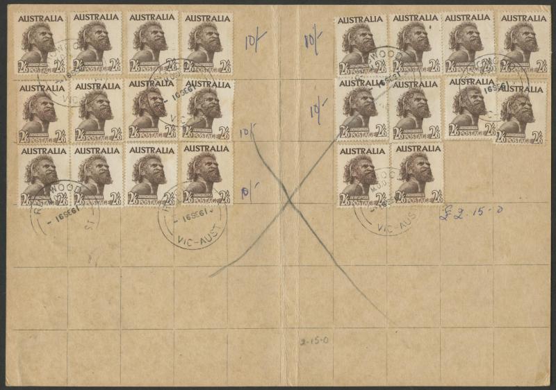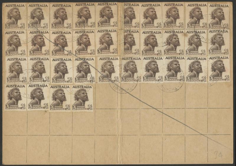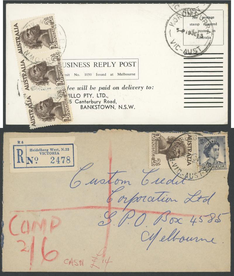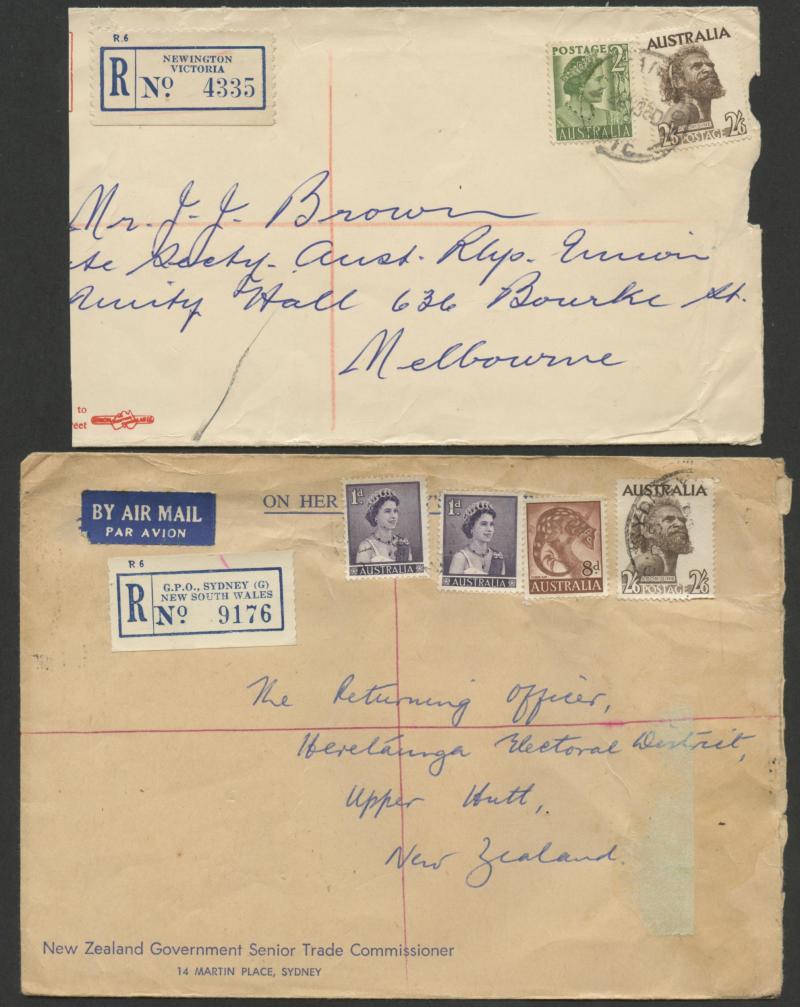 1952-65 2/6d Aborigine usages including solo frankings on Mobil Oil oversized envelope domestic airmail to Brisbane and to Austria