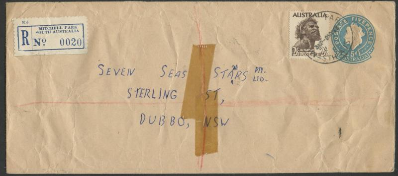 UK paying the increased 2/3d airmail rate, 1963 business reply postcards with a solo, with a strip of 3, and with 3/- Flower, 1964 with QEII 5d blue on registered cover endorsed "Comp 2/6" (compensation fee), lots of others on domestic registered