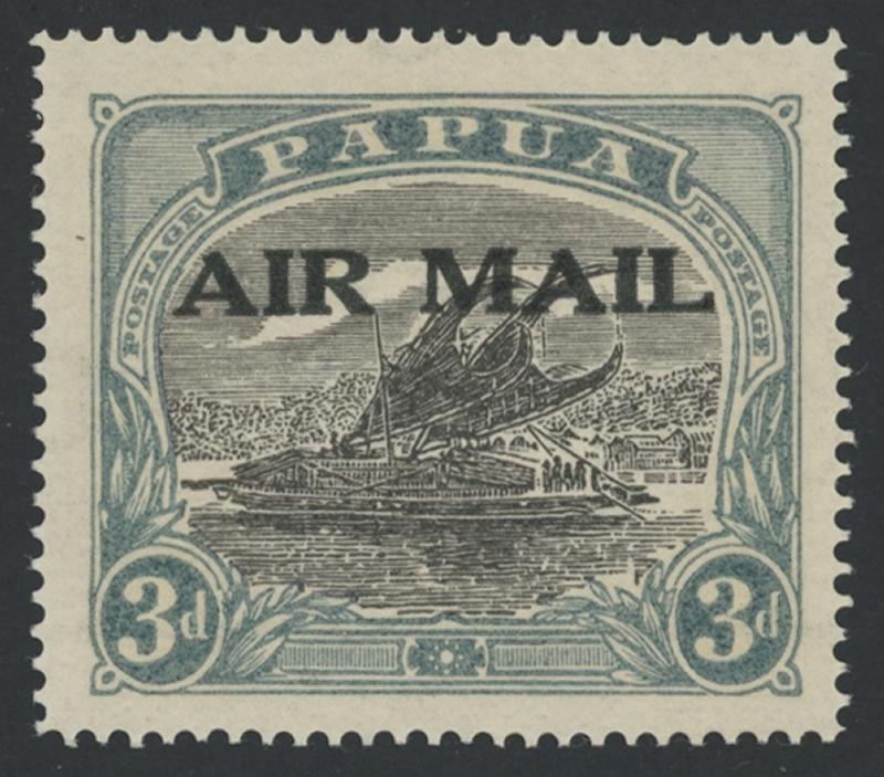 1929-30 'AIR MAIL' Overprints on Ash Printing 3d black & deep dull greenish-blue SG 112 shade, very fresh & lightly mounted.